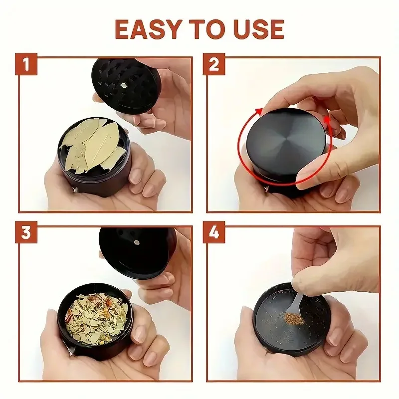 40mm Herb Grinder 4 Sections Portable Spice Grinder Multifunctional Zinc Alloy Cigarette Shredder Kitchen Gadget Creative Gift