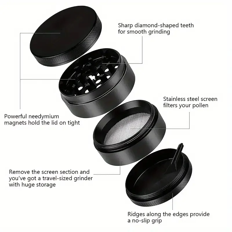 40mm Herb Grinder 4 Sections Portable Spice Grinder Multifunctional Zinc Alloy Cigarette Shredder Kitchen Gadget Creative Gift