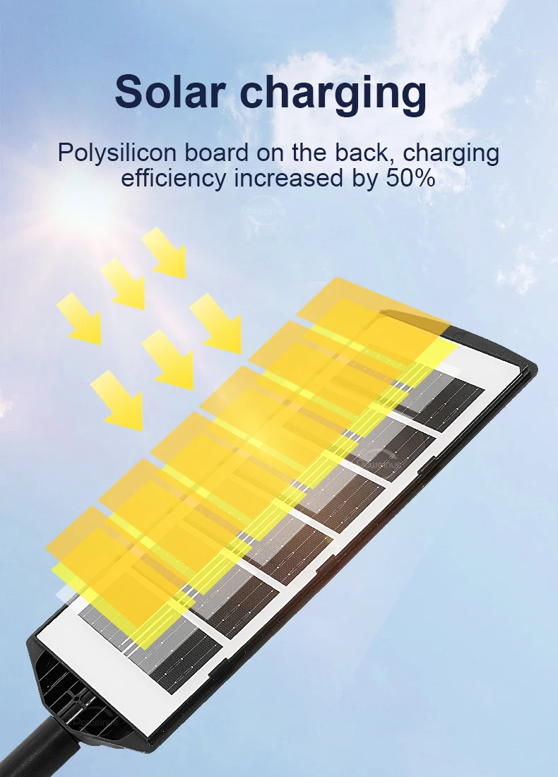 2. Effective solar charging: A single crystal silicon solar panel with high efficiency, 200% improving charging efficiency. Charge quickly even on cloudy days, ensuring no electricity bills throughout the year!