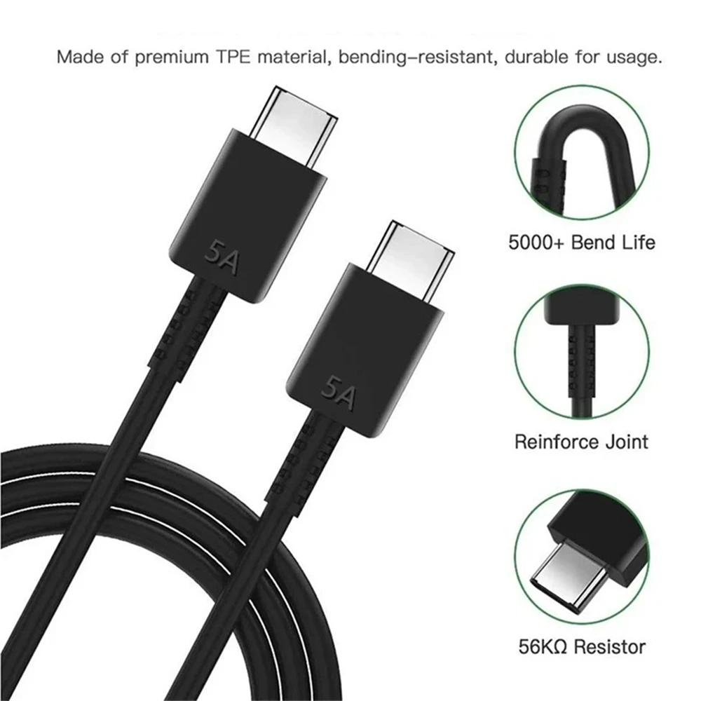 45W 5A Super Fast PD Charger For Samsung S21 S22 FE S23 S24 S25 Ultra A34 A52 A53 A54 A73 Type-C to USB-C Rapid Charging Cable