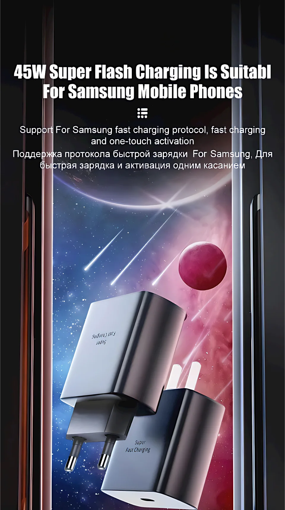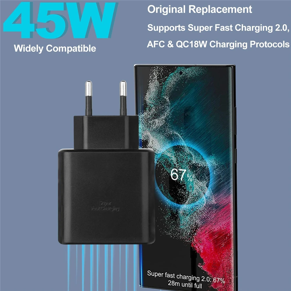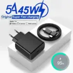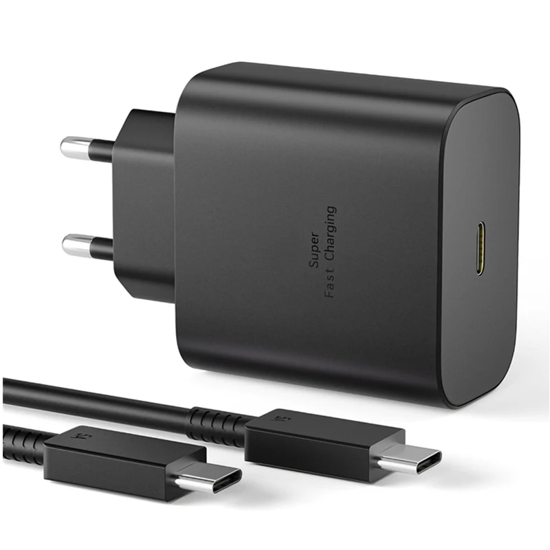 EU Plug 45W 5A Super Fast PD Charger For Samsung S20 S21 S22 FE S23 S24 S25 Ultra Note 10 20 A15 A25 A33 A34 A35 A52 A53 A54 A71 A73 Type-C to USB-C Rapid Charging Cable