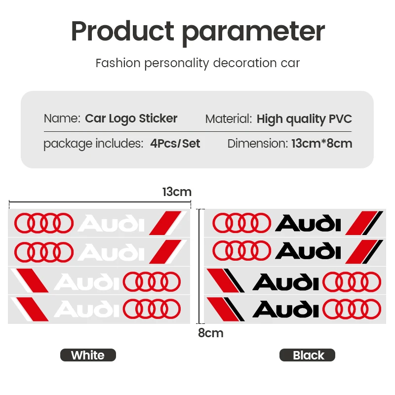 Be the first to review “4PCS Car Styling Door Handle Decoration Stickers Decals For Audi Sline A4 A5 A7 S4 RS4 A6 TT A1 A2 A3 Q1 Q3 Q5 Q8 Accessories”