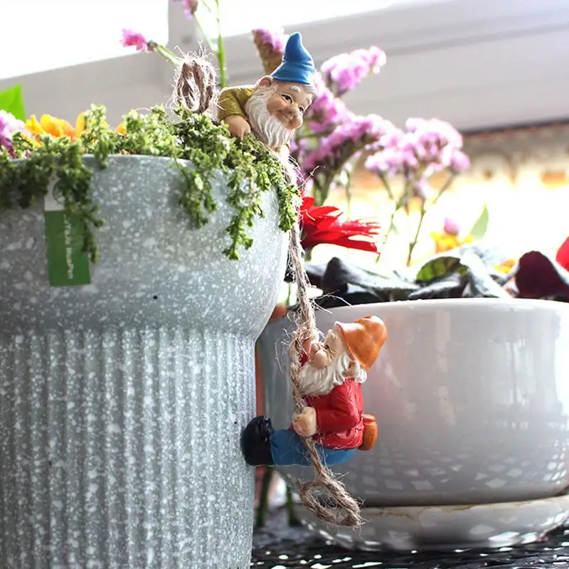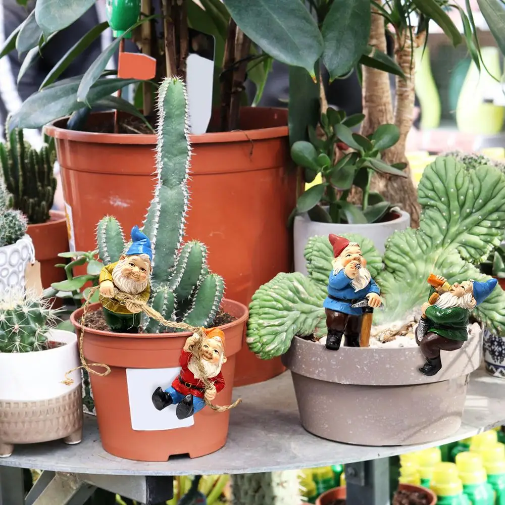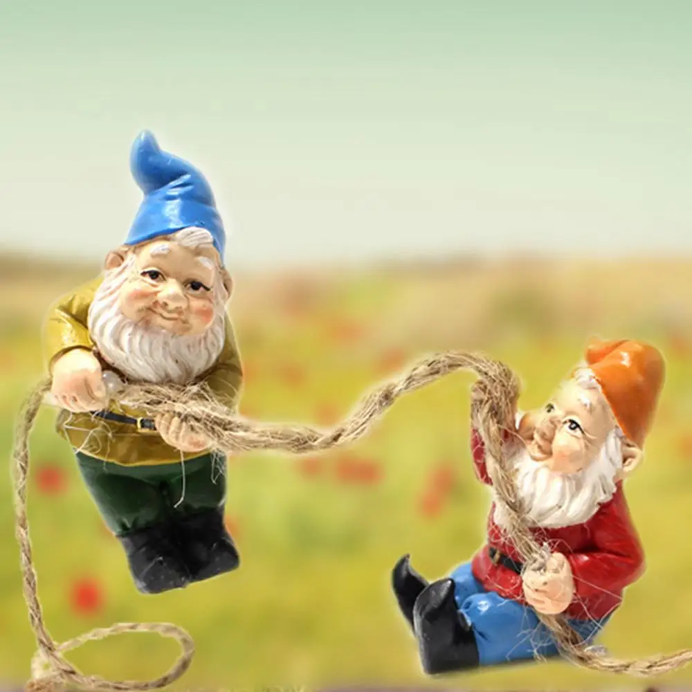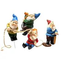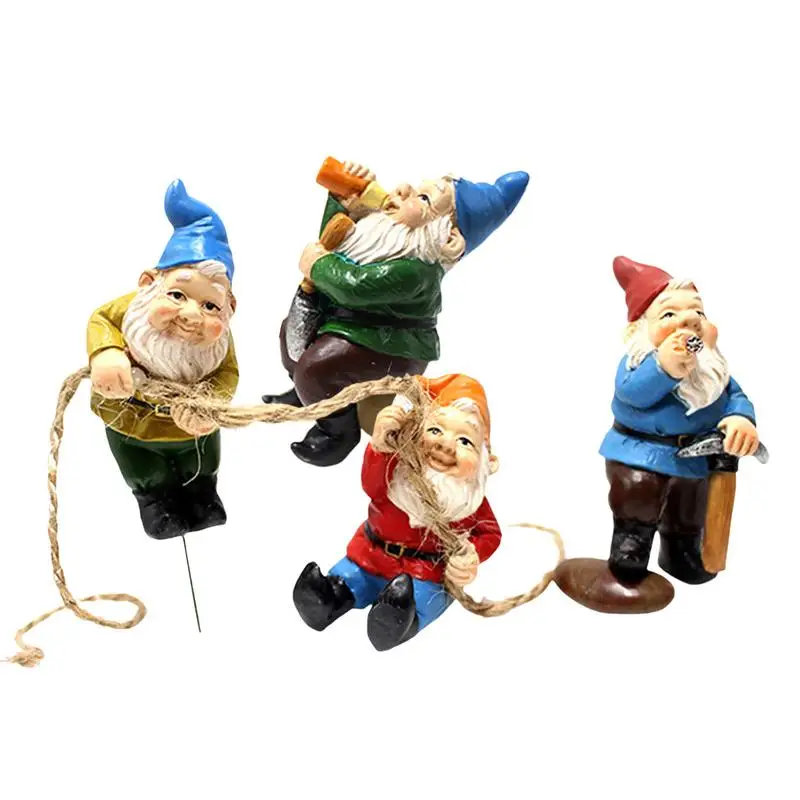 2.【4 Gardening Gnomes Statues】These 4 interesting Garden Gnomes Sets, a dwarf is holding a rope in his hand, one is climbing, one is smoking and watching, and one is sitting and drinking, with different styles.