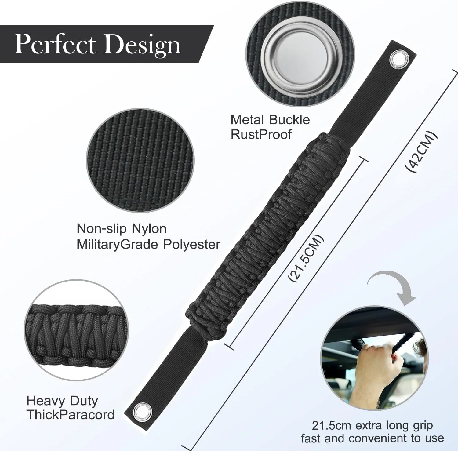 • 【Good Quality】The paracord grab handles is woven from high-quality umbrella cord, which can withstand a pull weight of 550 lb.