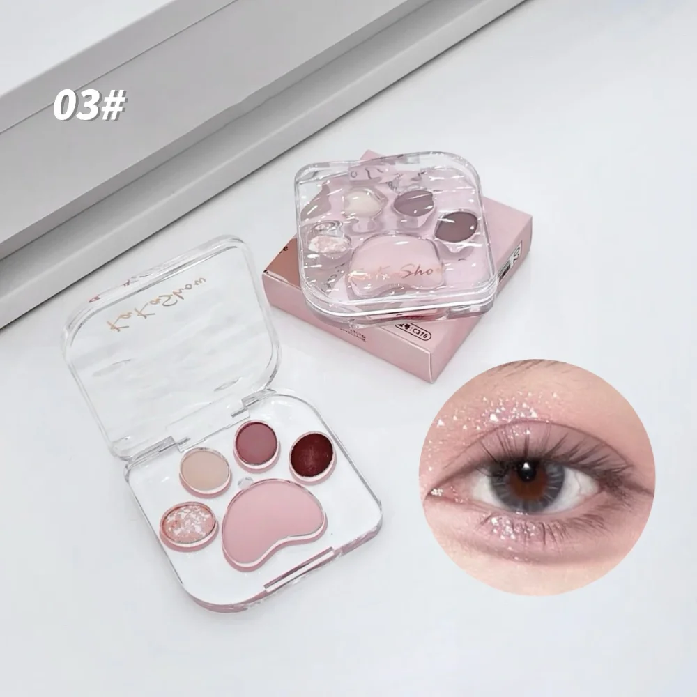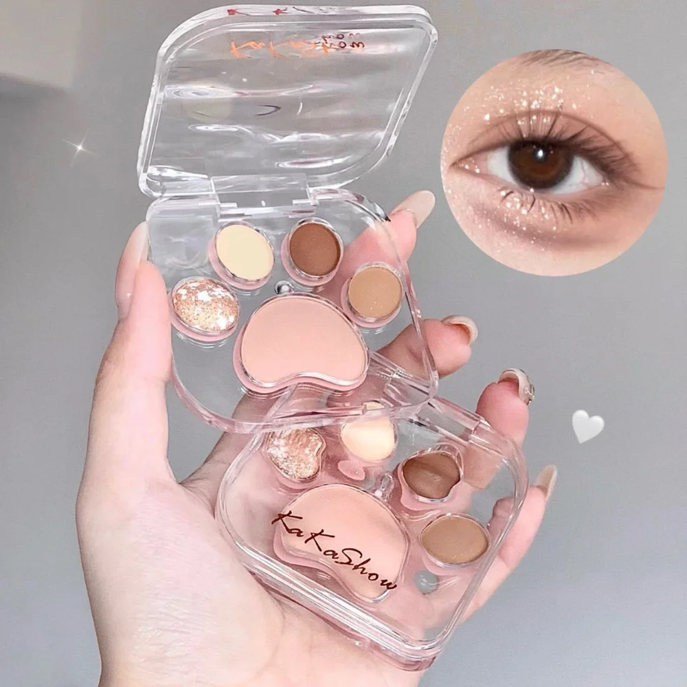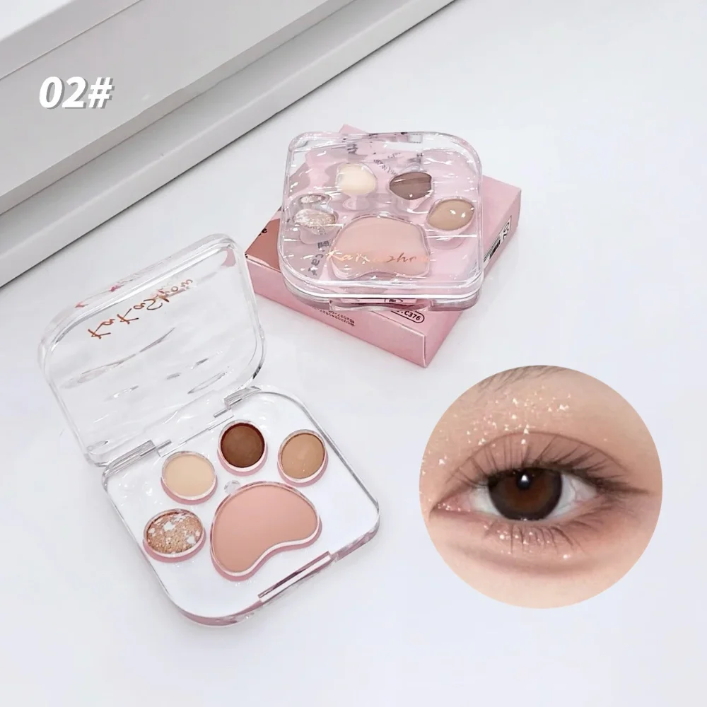5 Colors Cat Claw Eyeshadow Palette Cute Eye Makeup Palette Long Lasting Glitter Rose Blush Eye Shadows Korean Women Cosmetics