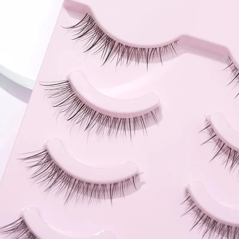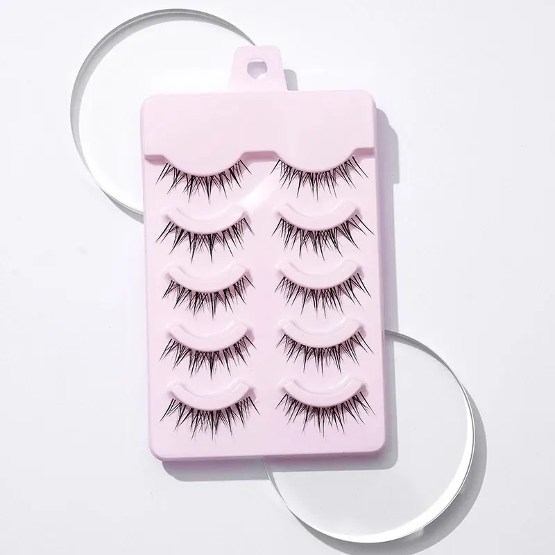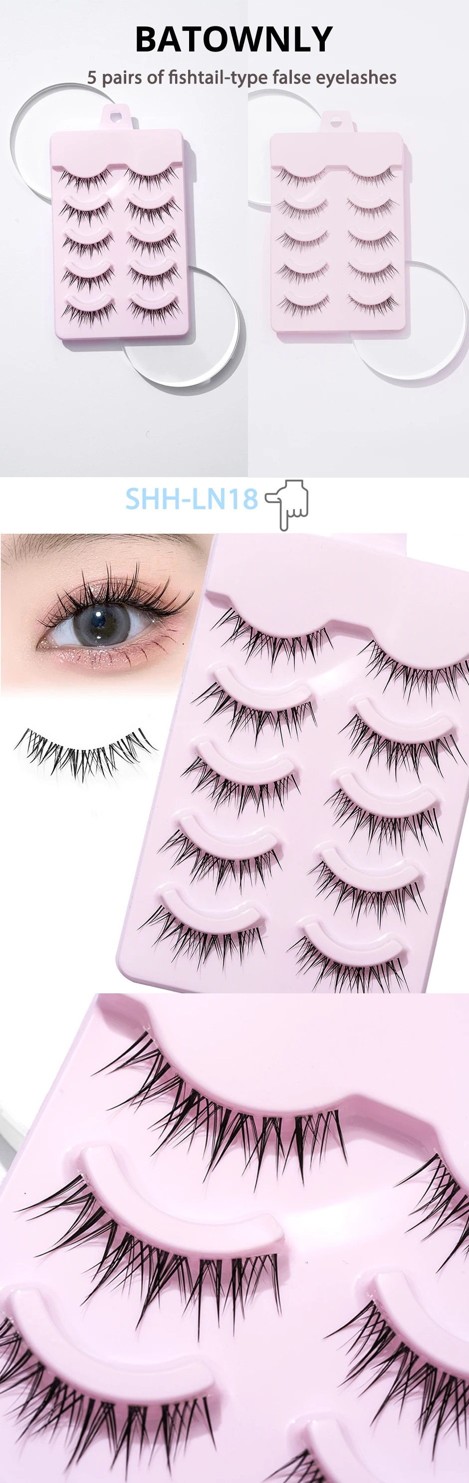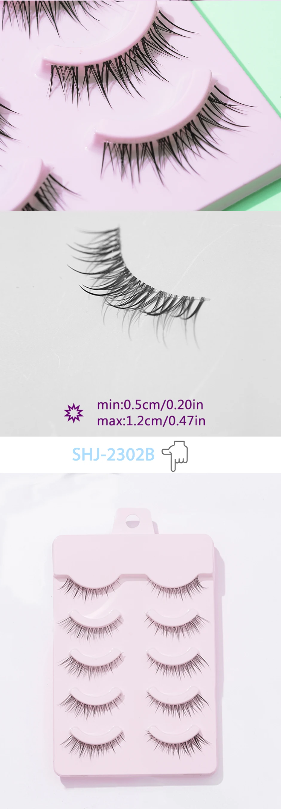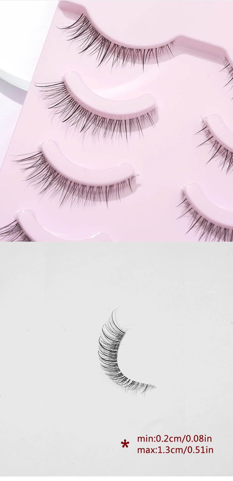 5 Pairs of Natural Slender Long Fish Tail Cross Eye Tail Elongated False Eyelashes Comic Fake Eyelashes