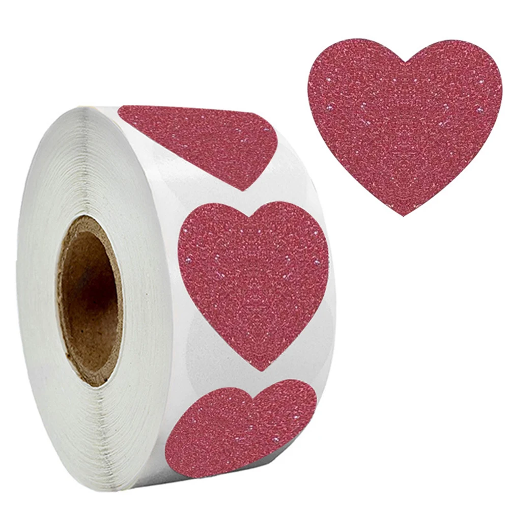 50-300Pcs Red Gift Decorative Sticker Glitter Heart Stickers Labels For Valentine’s Day Card, Envelope, Weeding Birthday Party