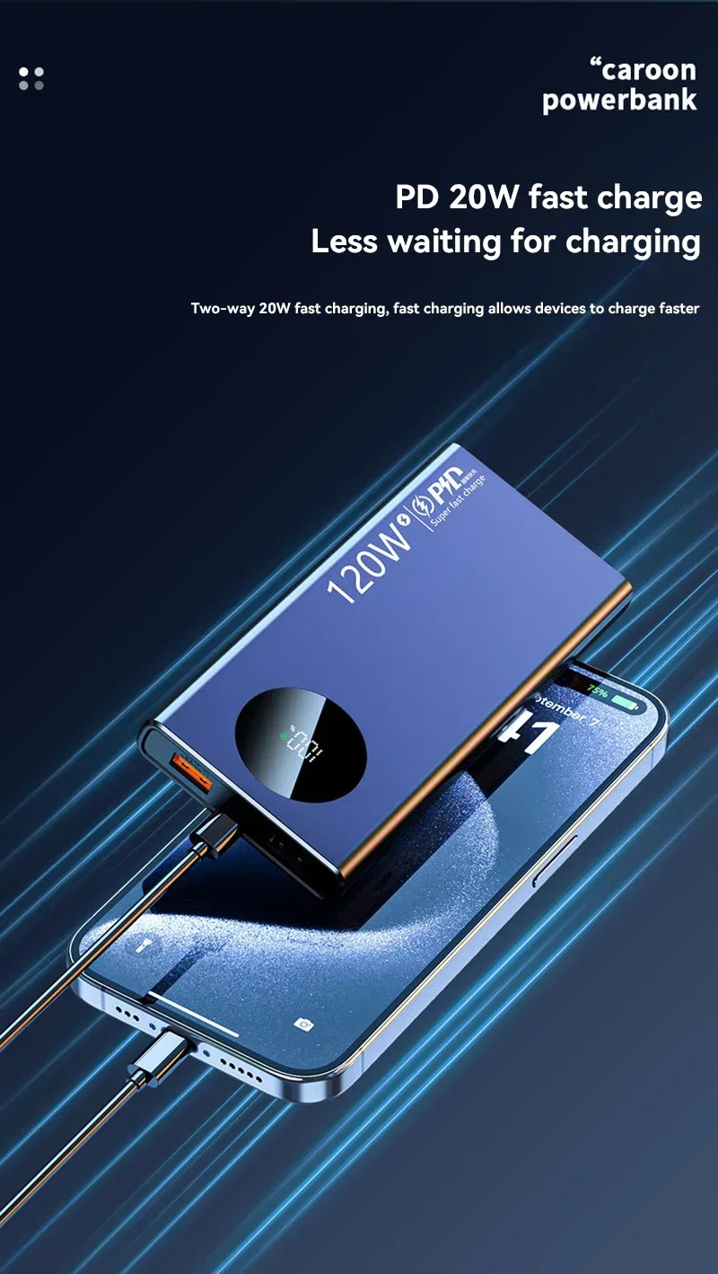 120W Super Fast Charging 50000mAh High Capacity Power Bank Thin Light Digital Display Power Bank For iPhone Samsung Huawei 2025