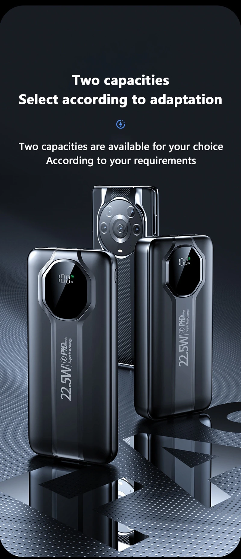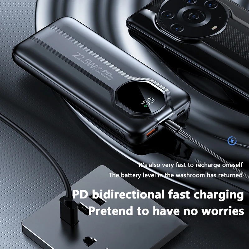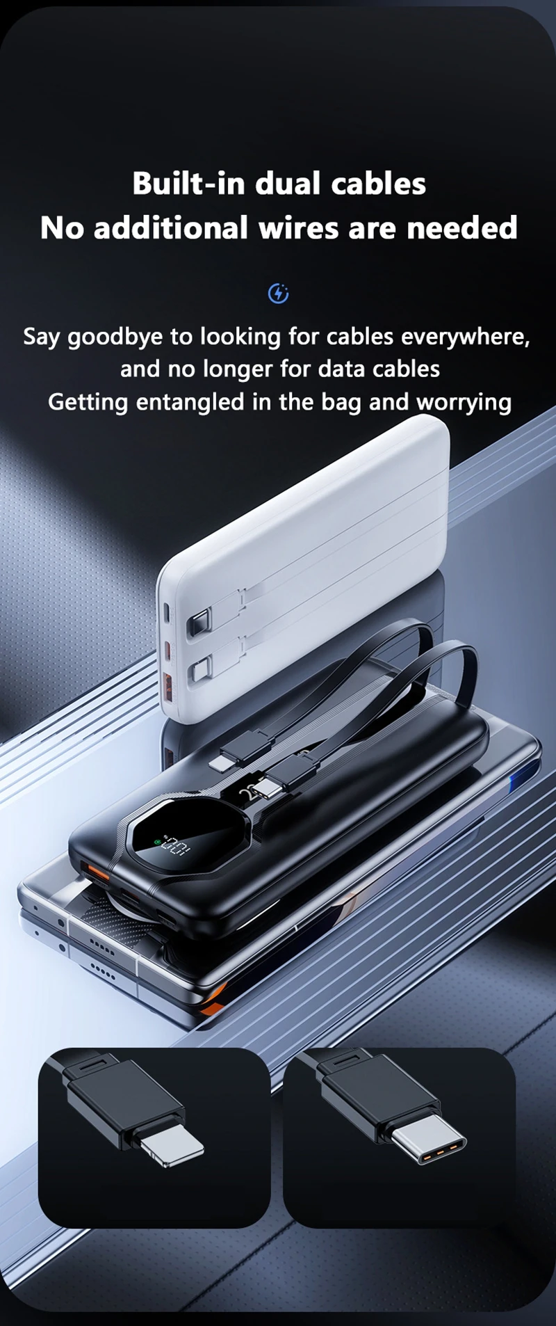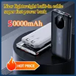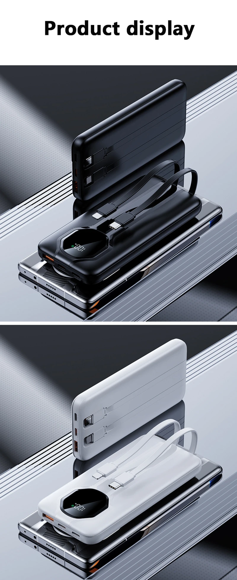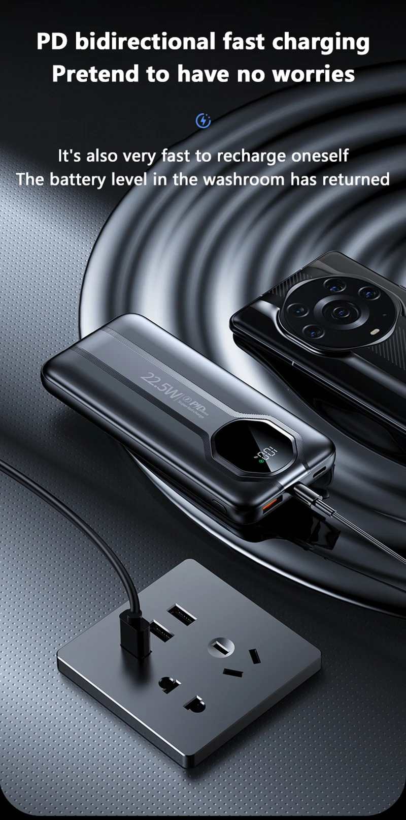 50000mAh Power Bank Portable Charger Fast Charging External Battery For Mobile Phone Digital Display Equipped With Double Cable