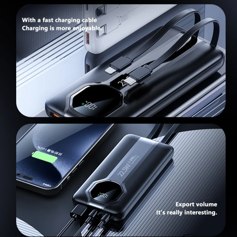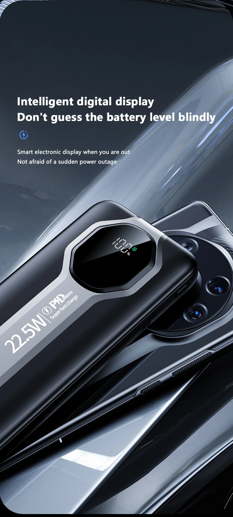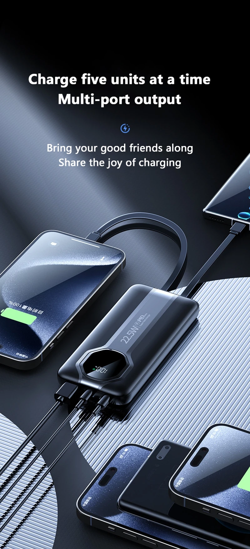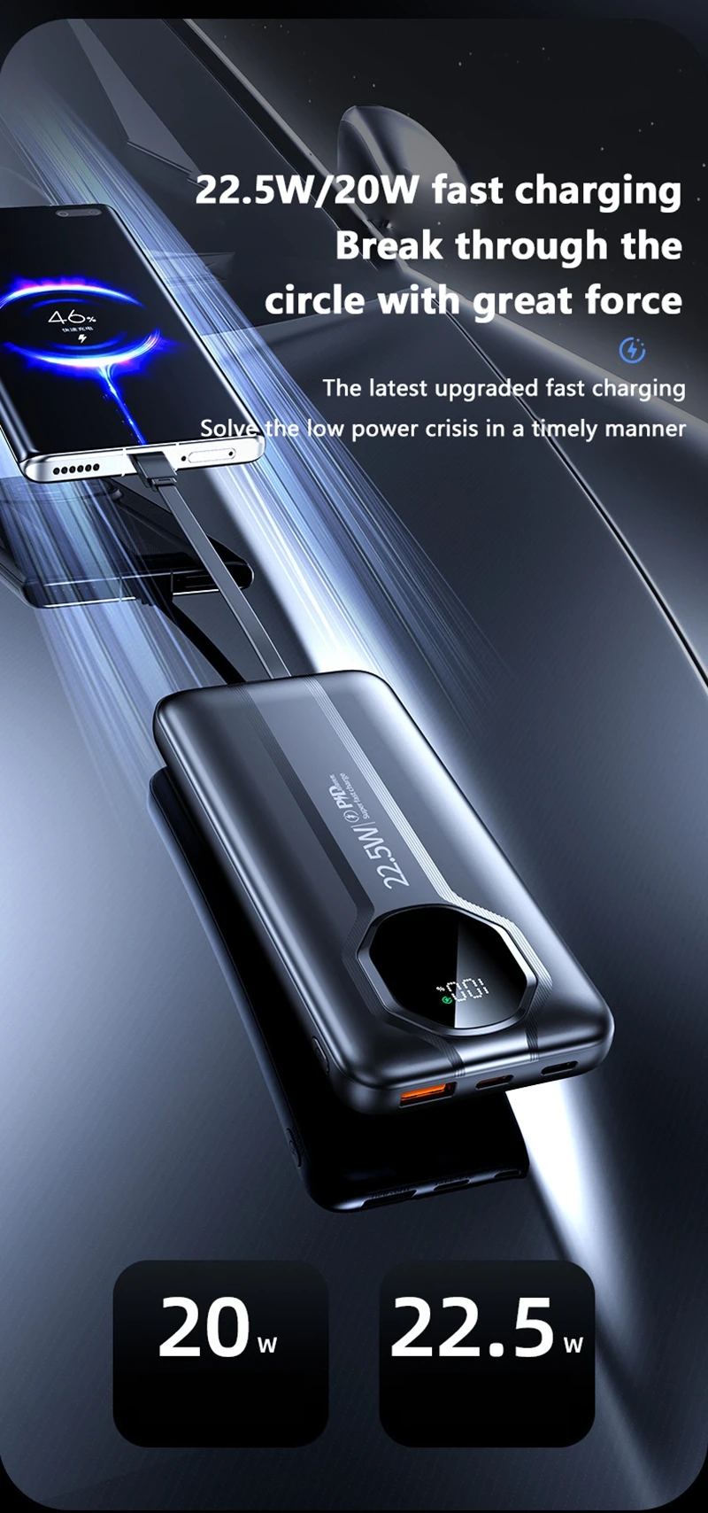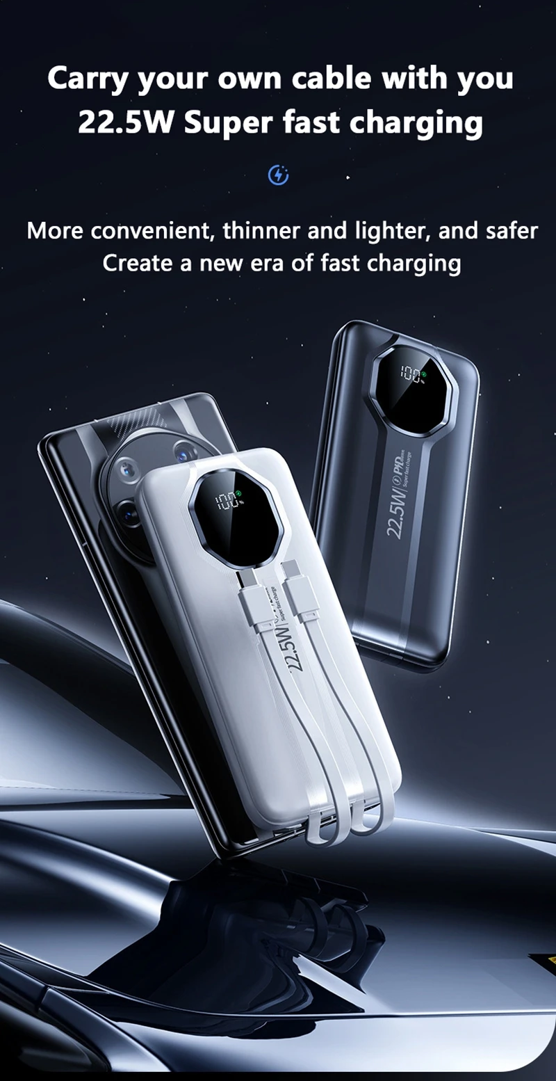 50000mAh Power Bank Portable Charger Fast Charging External Battery For Mobile Phone Digital Display Equipped With Double Cable