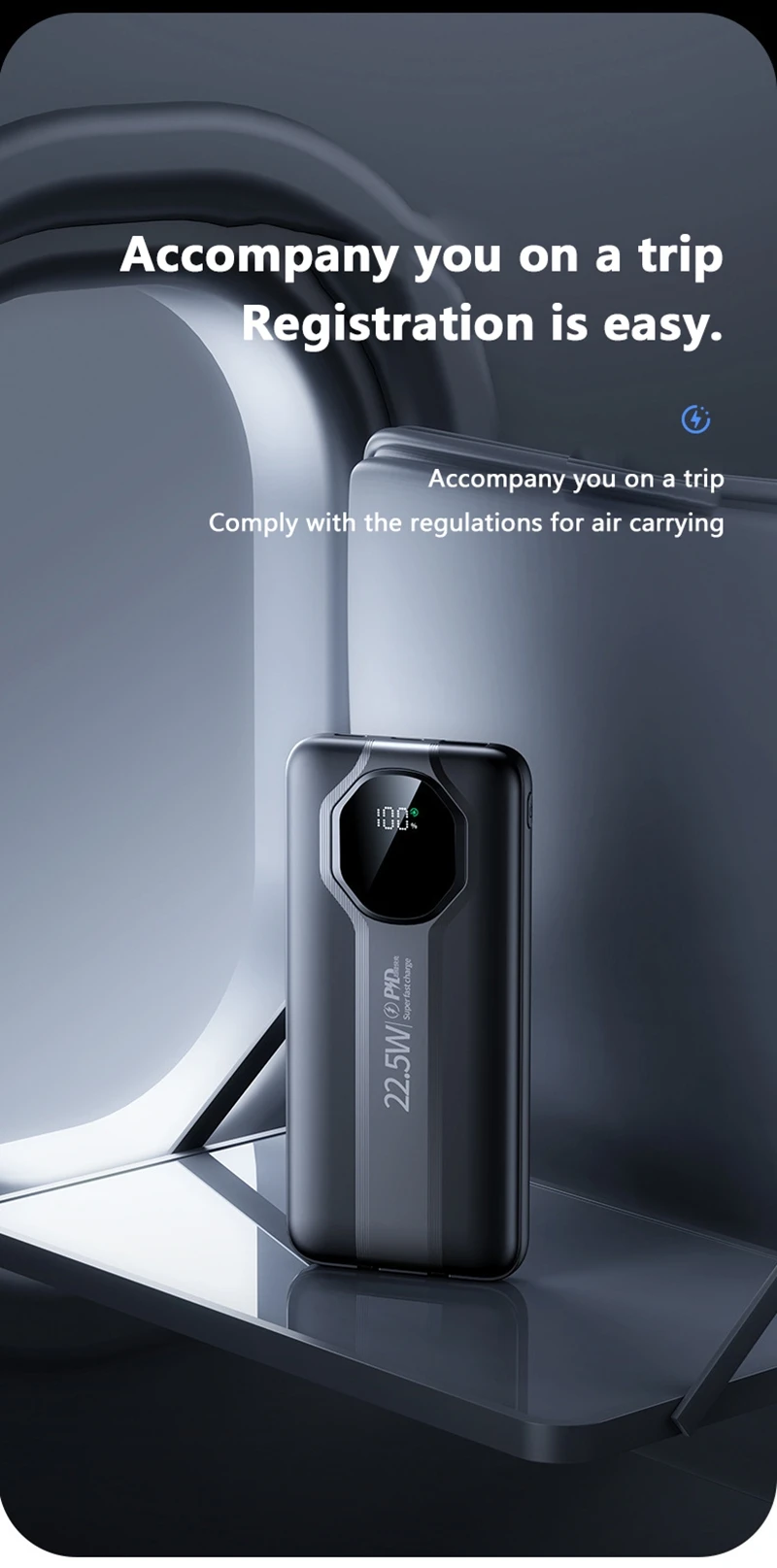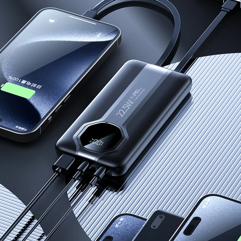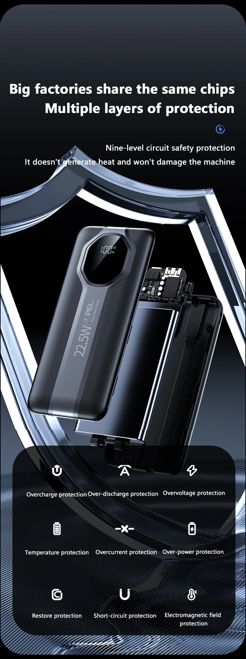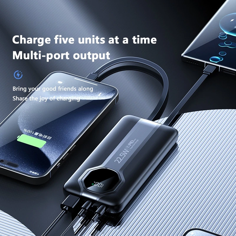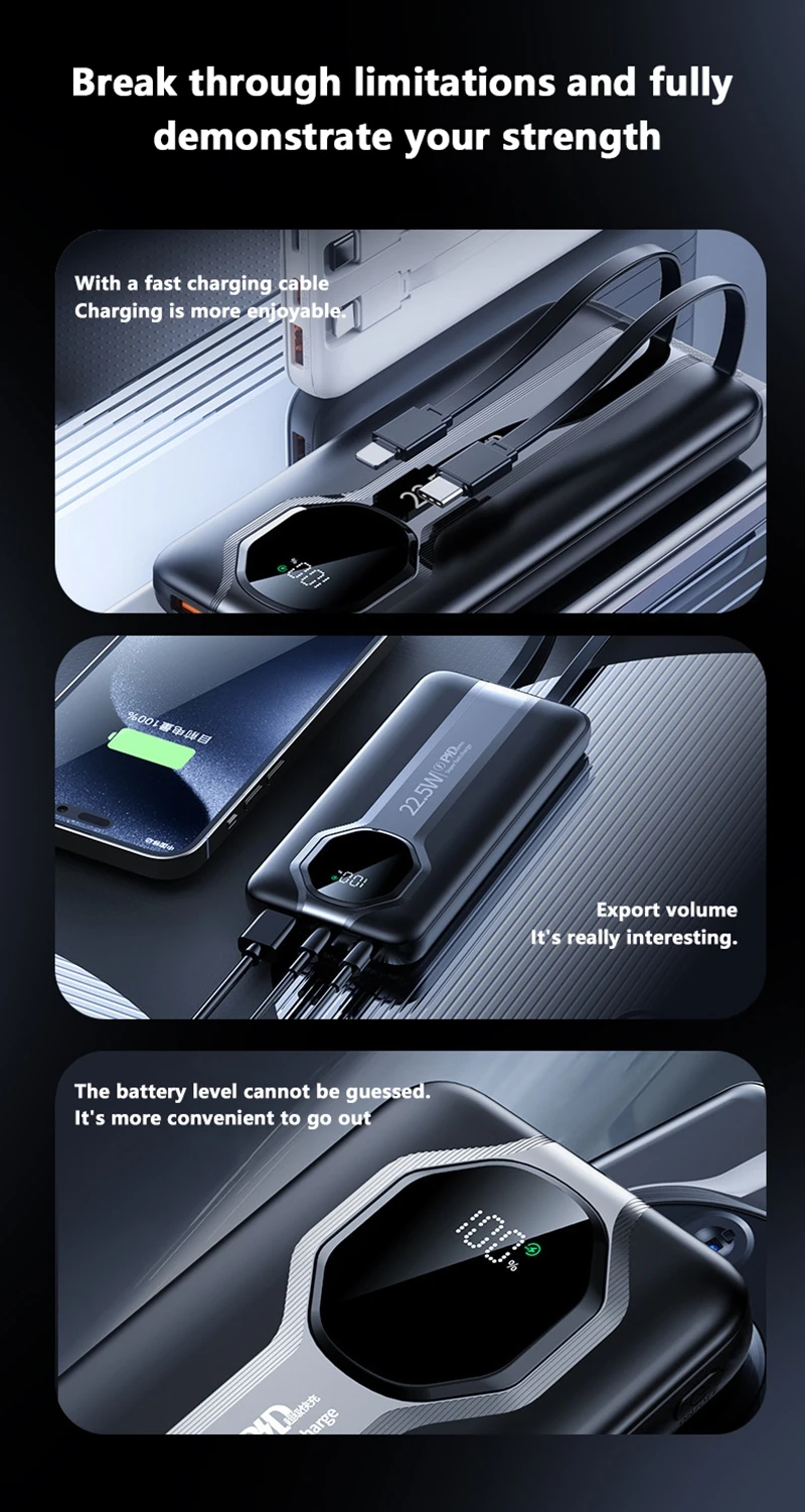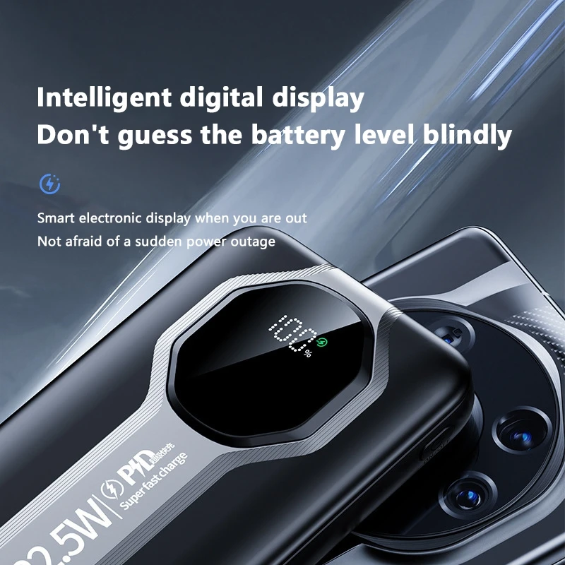 50000mAh Power Bank Portable Charger Fast Charging External Battery For Mobile Phone Digital Display Equipped With Double Cable