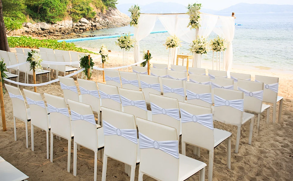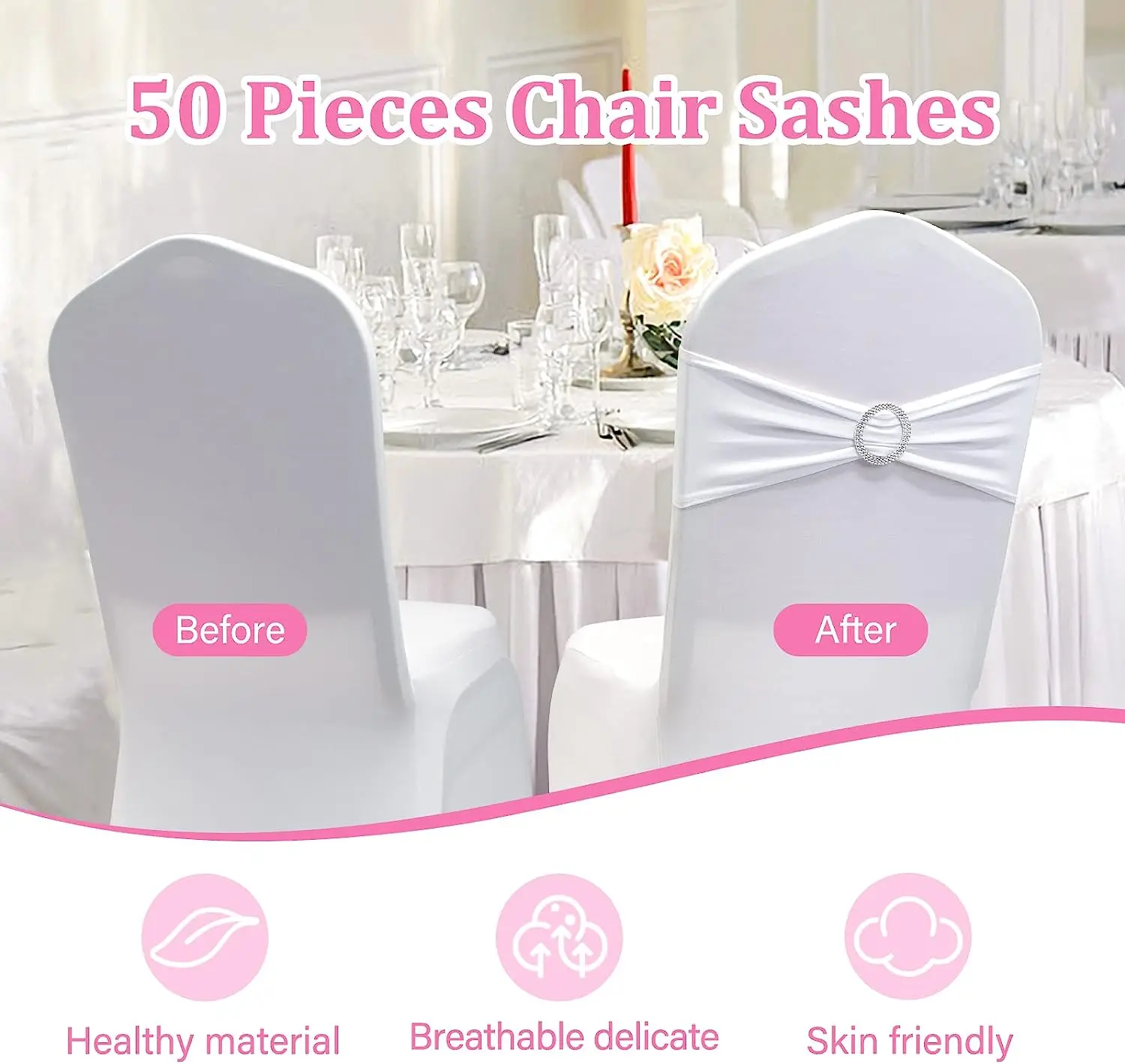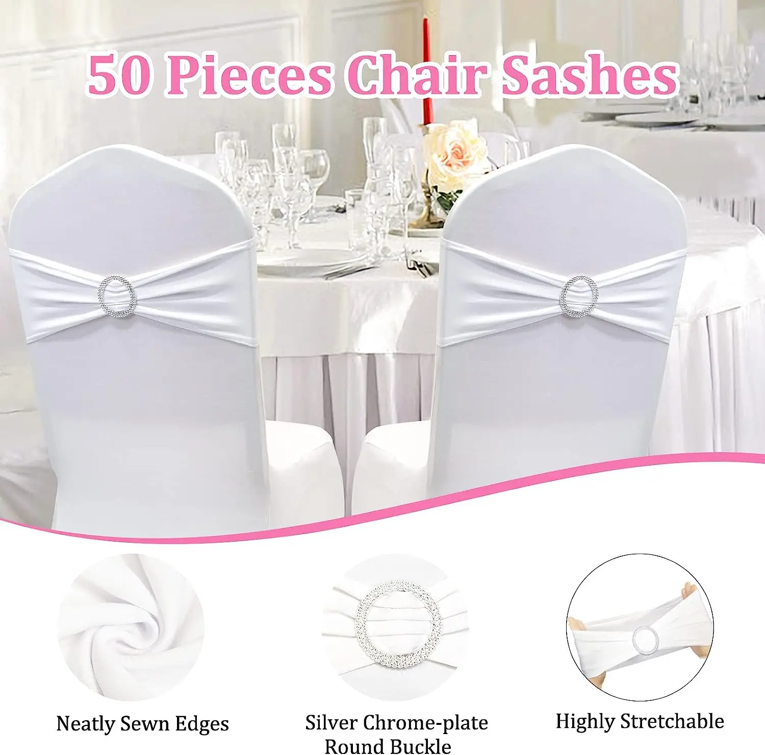 50Pcs Wedding Chair Knot Back Cover Sash Bow Elastic Band Buckle Decoration Props Slider for Events Decor Banquet