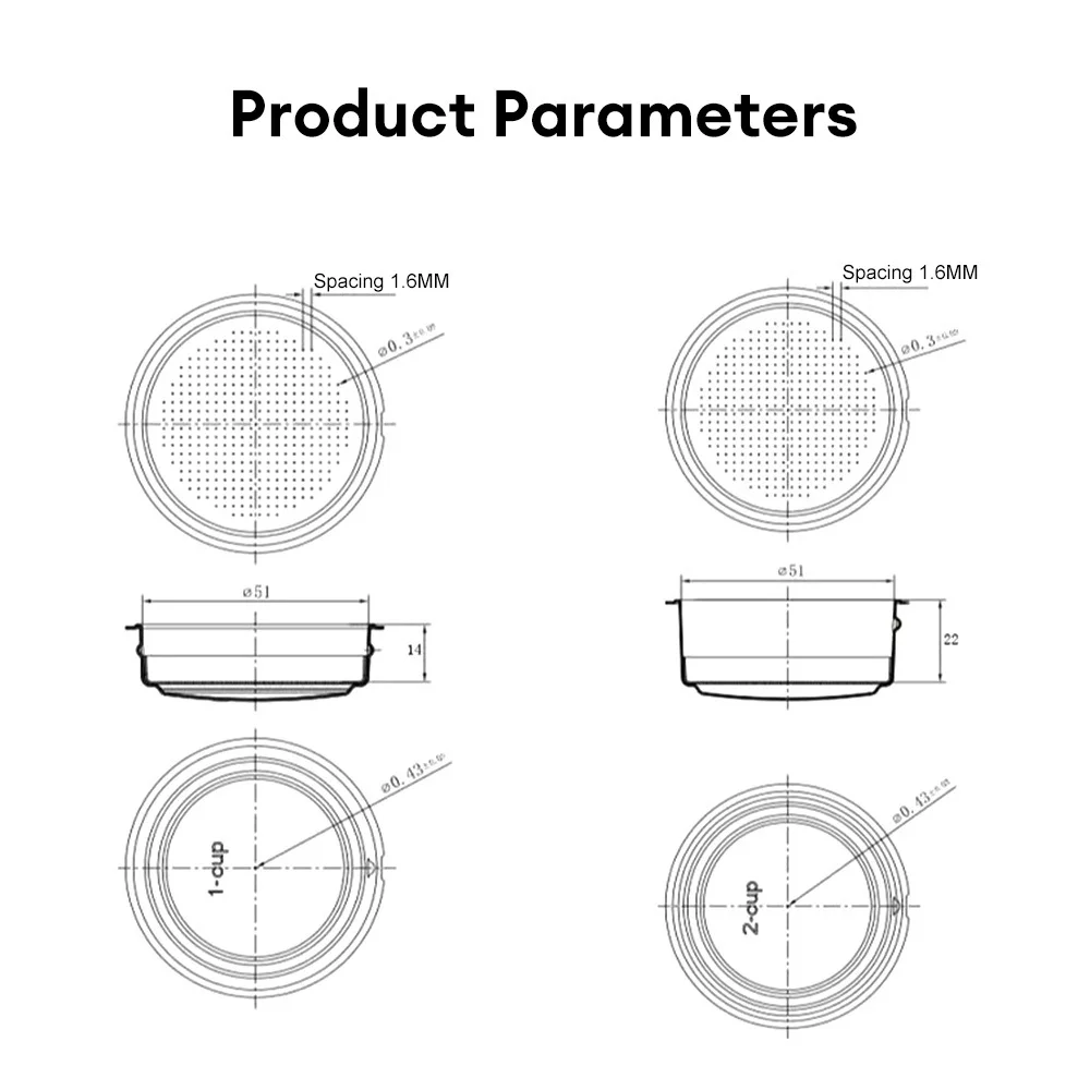 Be the first to review “51mm Stainless Steel Coffee Filter Basket 1/2 Cup Espresso Machine Dripper Portafilter Coffee Maker Strainer Coffee Puck Screen”