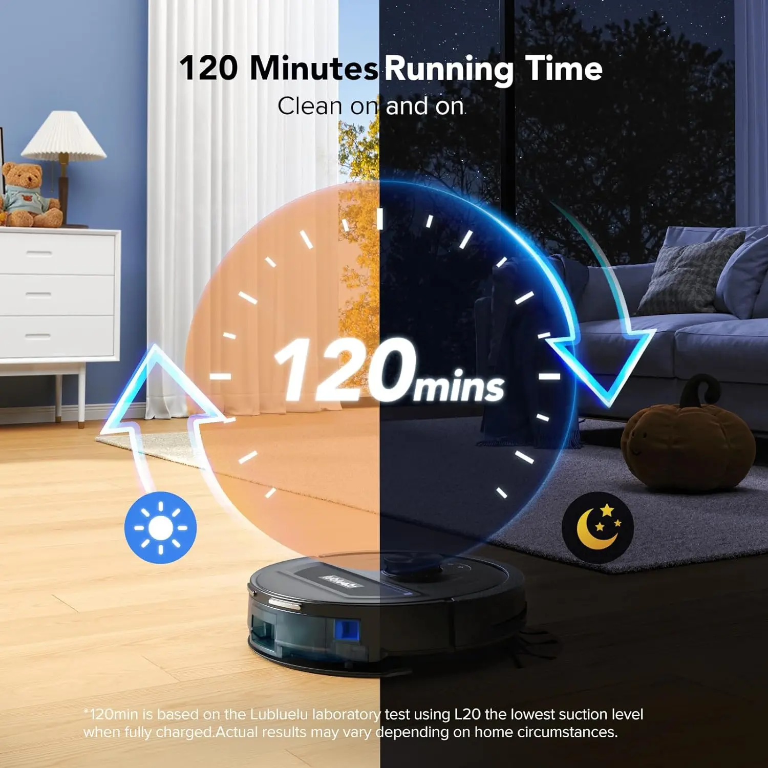 Upgraded Edge Cleaning Capabilities:Lubluelu intelligent robot edge cleaning sensor 2.0 has improved edge functions and fits the corners better than similar robots on the market. This allows it to move freely around the home, effectively cleaning corners, sofas, cupboards and more, ensuring your entire house can be cleaned more carefully. (*According to the calculations of our LUBLUELU lab, max cleaning area up to 1291 square feet.)