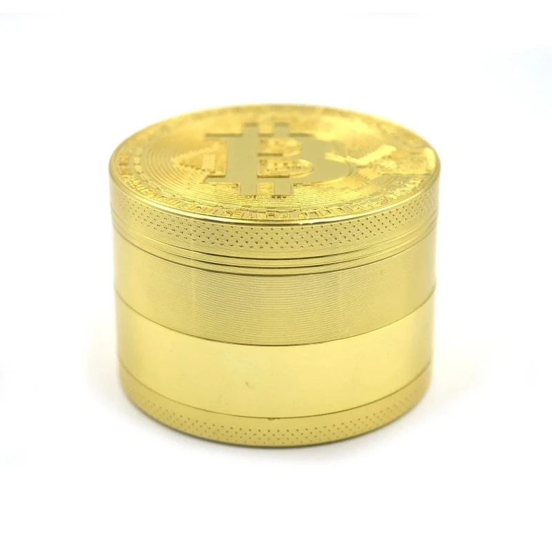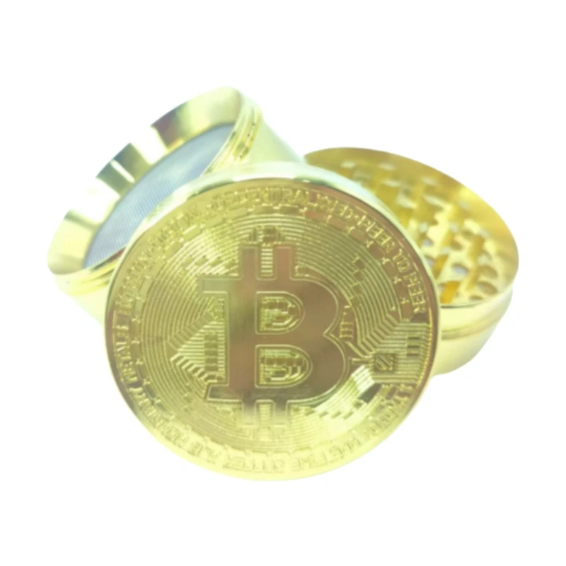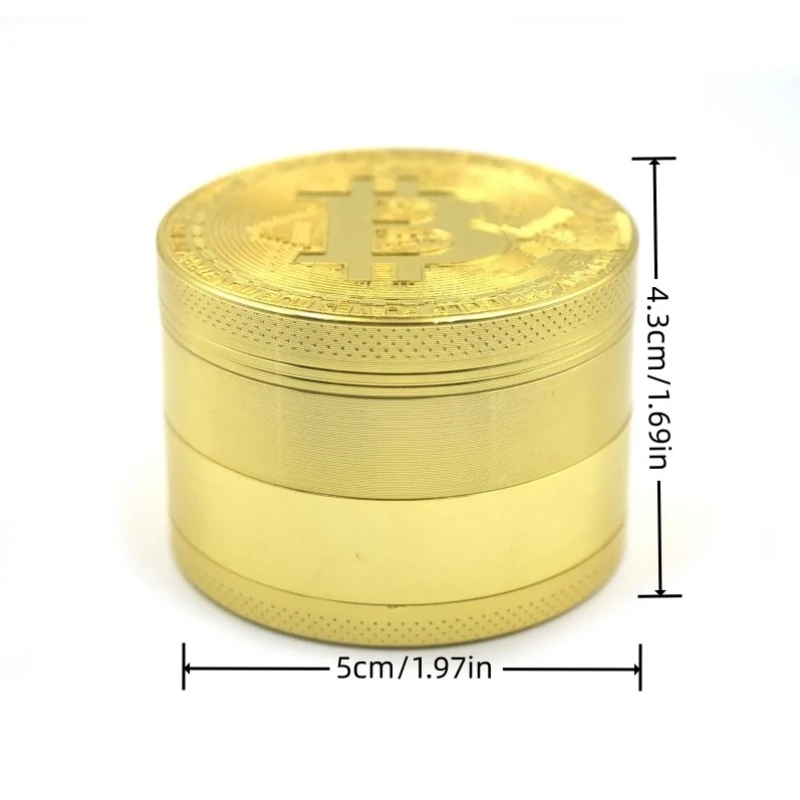 5cm Bitcoin 4-Layer Zinc Alloy Hemp Crusher Mill Cutter Metal Tobacco Herbal Spice Herb Grinder Shredder Smoking Accessories