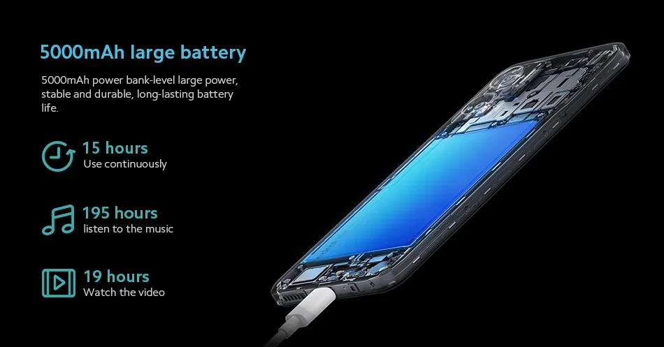 Battery——— 5000mAh(Typ) High-capacity Battery, Support 18W Fast Charging, In-box 22.5W Charger