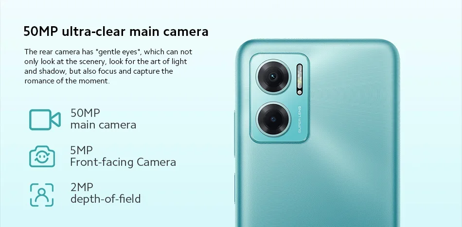 Camera——– 50MP+2MP Rear Camera, 5MP Front Camera