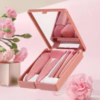 5pcs Mini Makeup Cosmetic Brushes Sets Translucent Box Mirror Face Foundation Powder Blusher Protable Travel Carry Make Up Tools