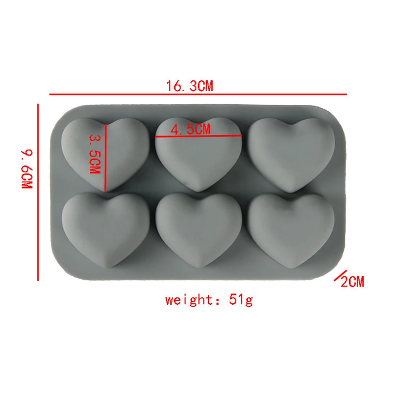 6 Cavity Soap Silicone Molds Heart Chocolate Mold Love Shape Forms Dessert Mousse Jelly Mold Confeitaria Cake Decoration Tools