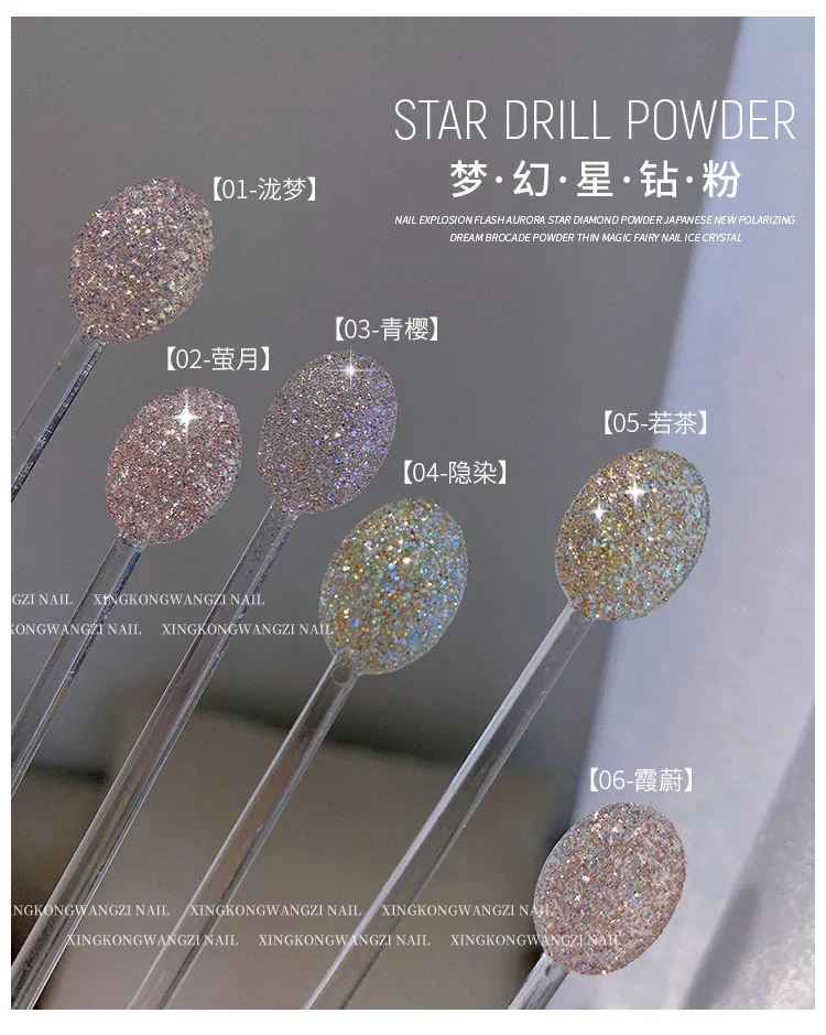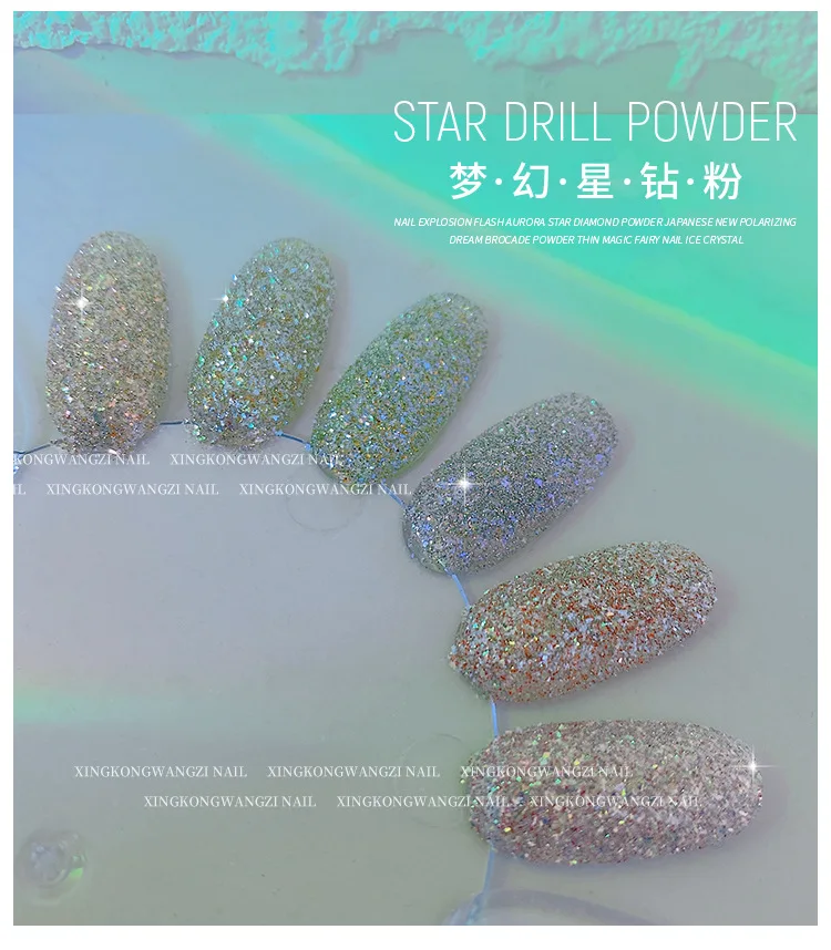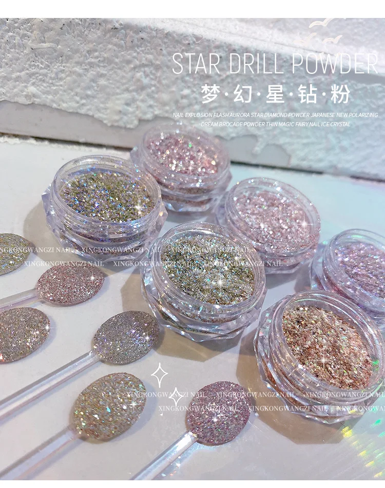 6 Colors Gold Nail Crystal Diamond Powder Rainbow Color Glitter Shiny Pigment Holographic Glass Micro Drill Nails Art Decoration
