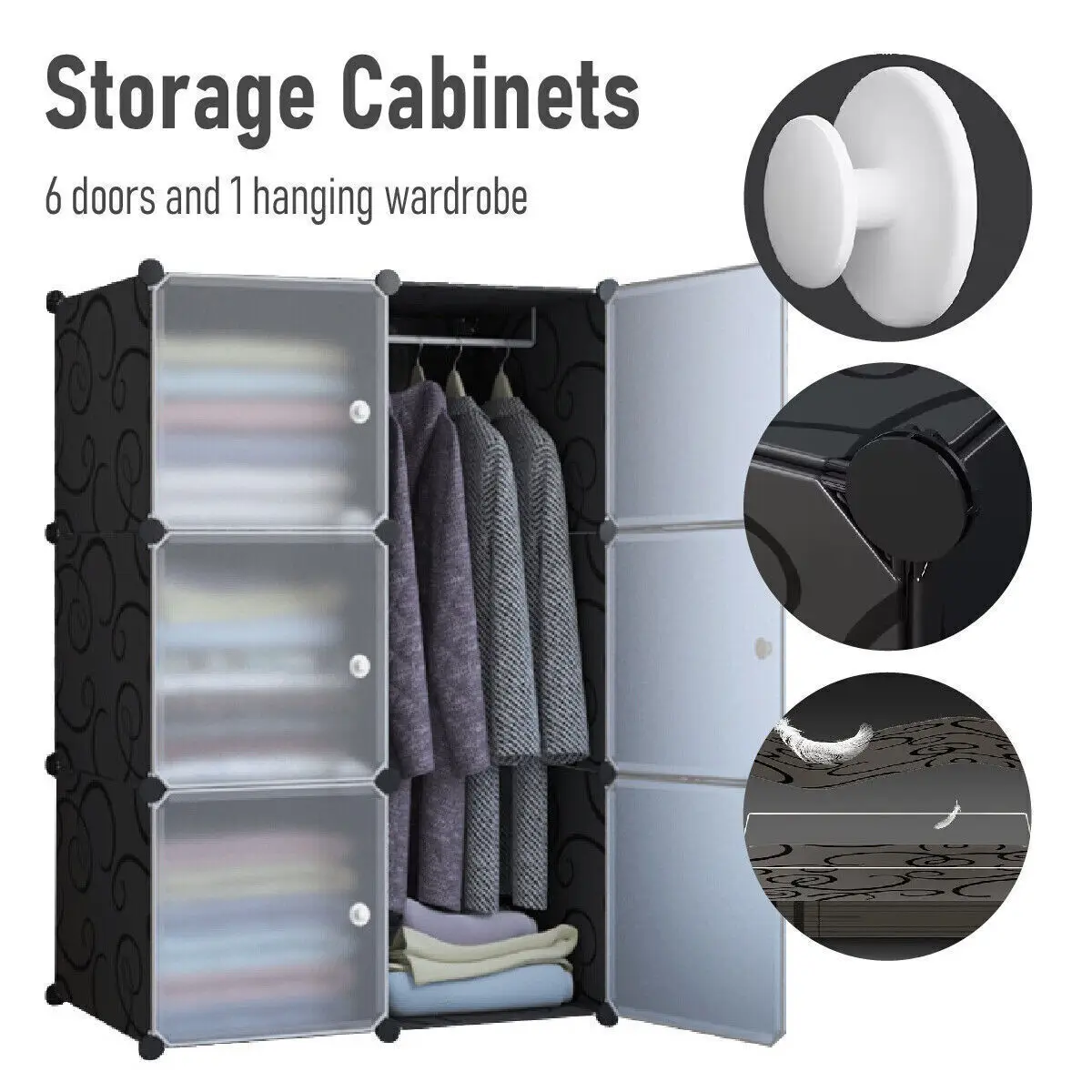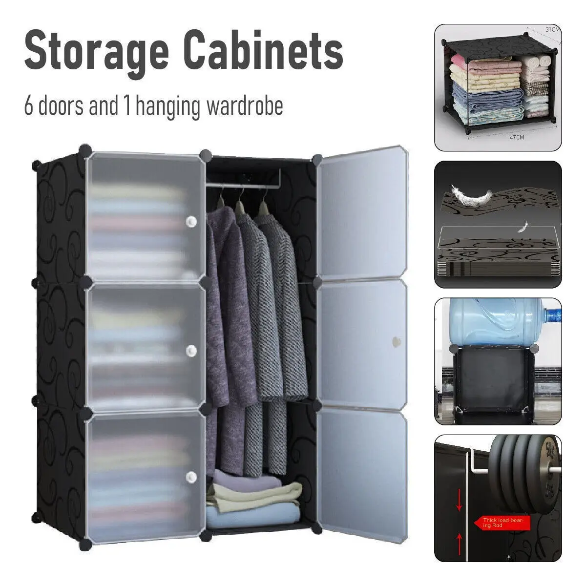 6 Doors Dustproof Wardrobe High Capacity Partition Modern Storage Cabinet Wardrobe Simple Assembly Wardrobe Plastic Bedroom