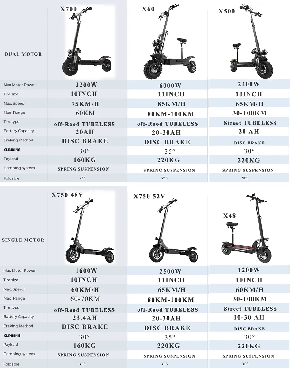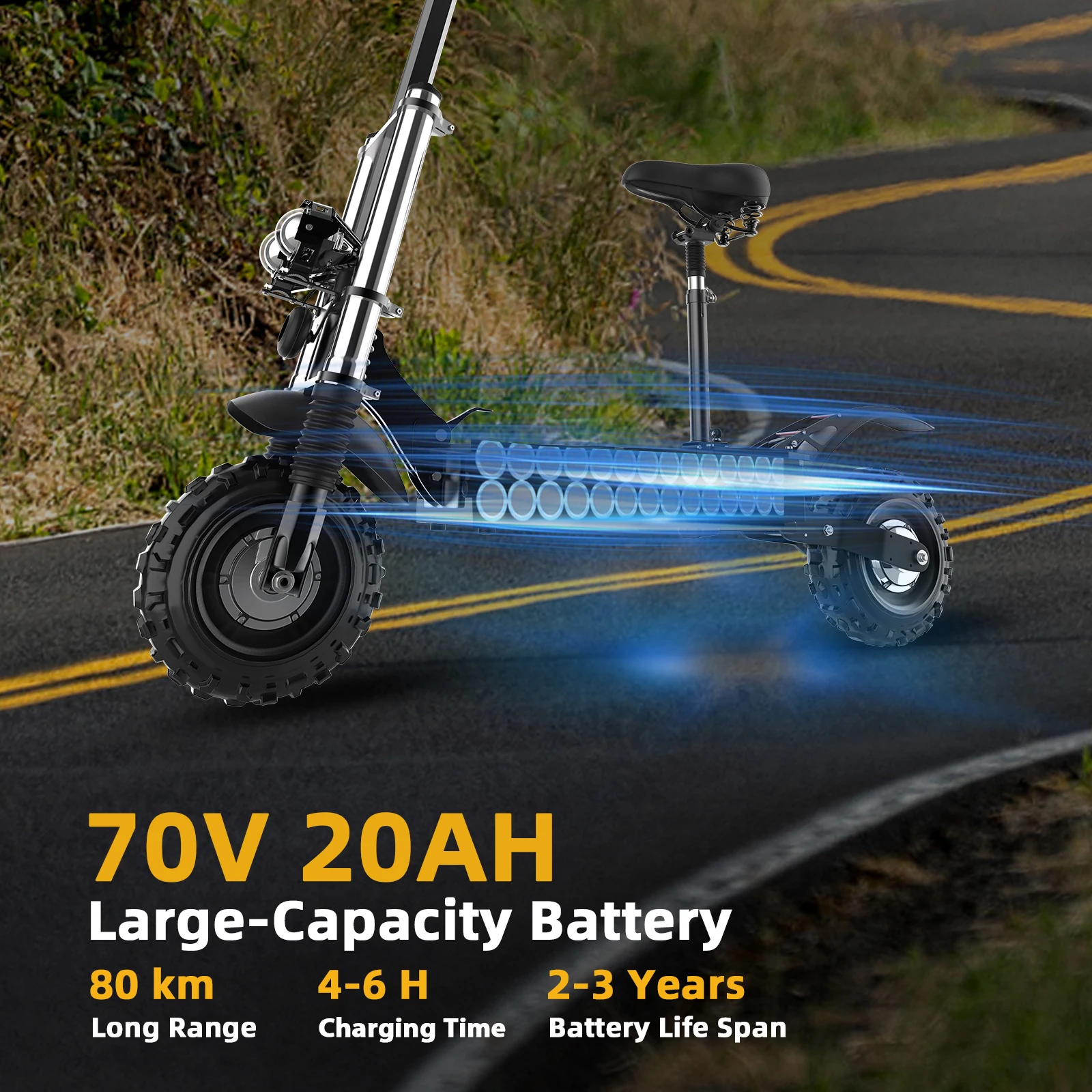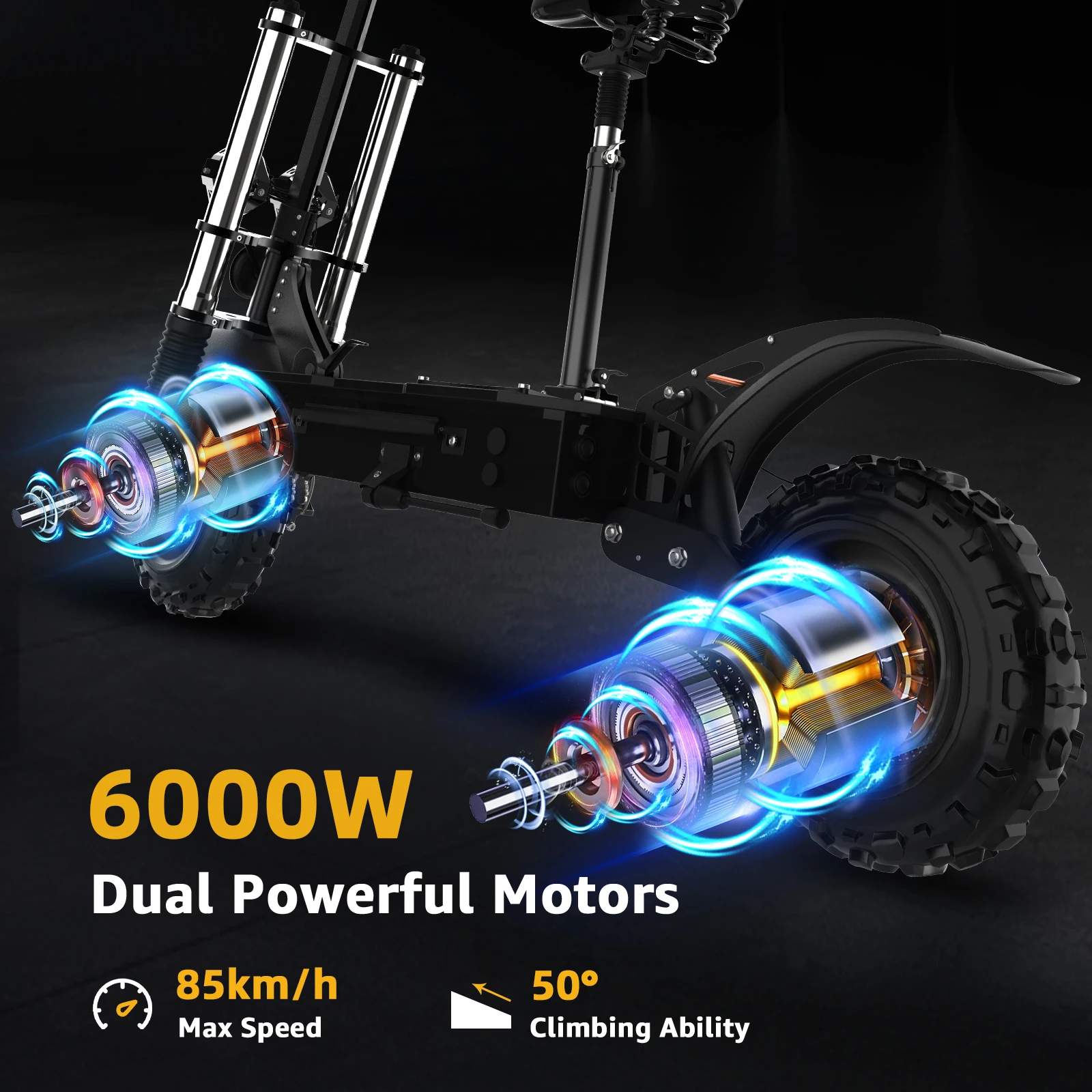 [6 Types ]Electric Scooter for Adults Single/Dual Motors Max6000W 85KM/H 72V 30Ah Battery 100KM Range 11″ Tubeless Off-Road Tire