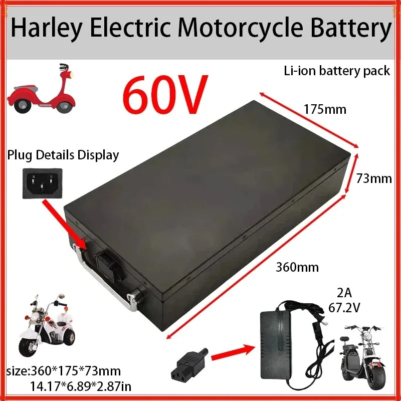 60V 20Ah-60Ah Electric Motorcycle Li-ion Battery Pack 2000W For Harley Two Wheel Foldable Citycoco Electric Scooter,Free Charger