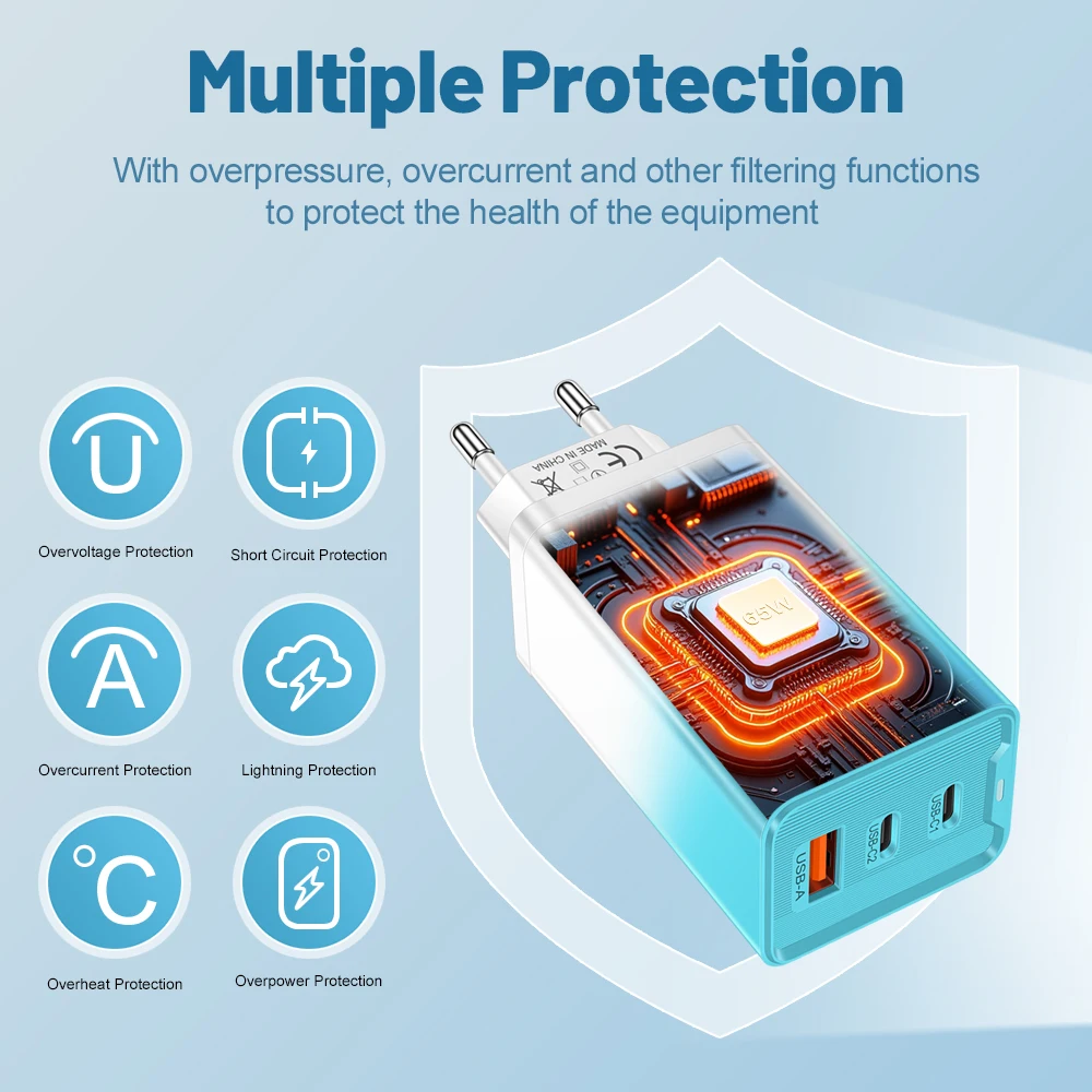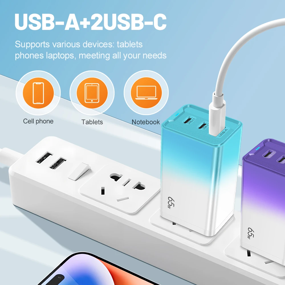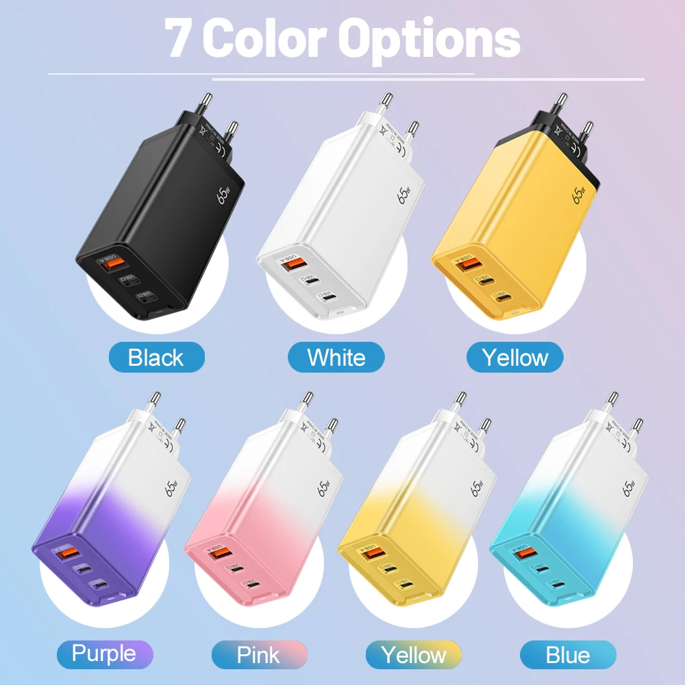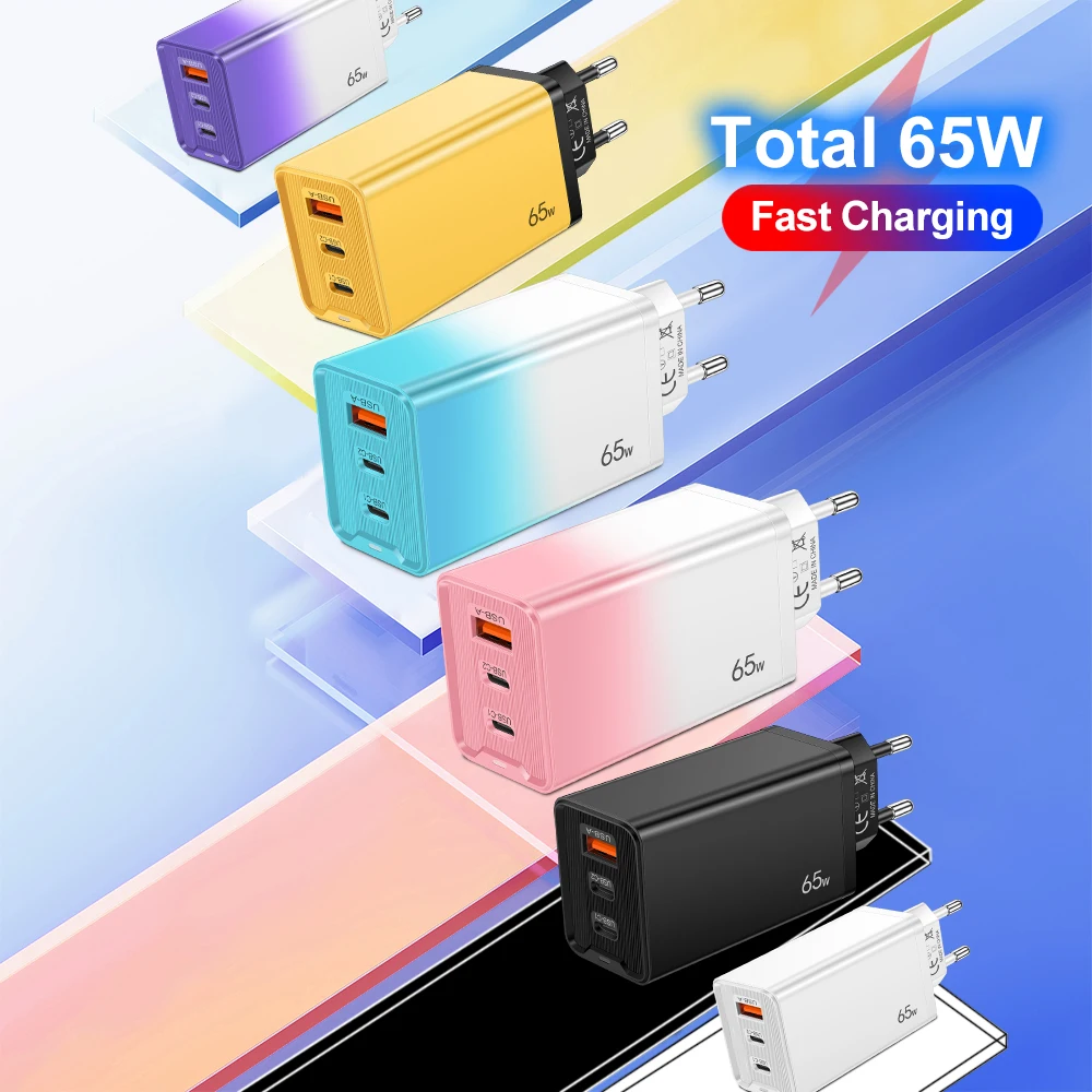 65W GaN USB C Charger PD QC 3.0 Charging Phone Charger Adapter For iPhone Samsung Xiaomi Type C Quick Charge Wall Charger