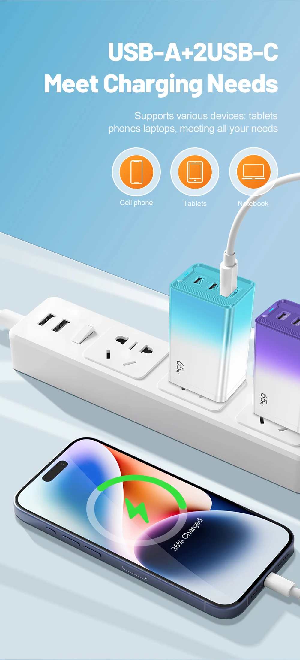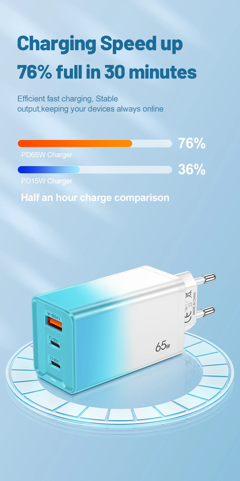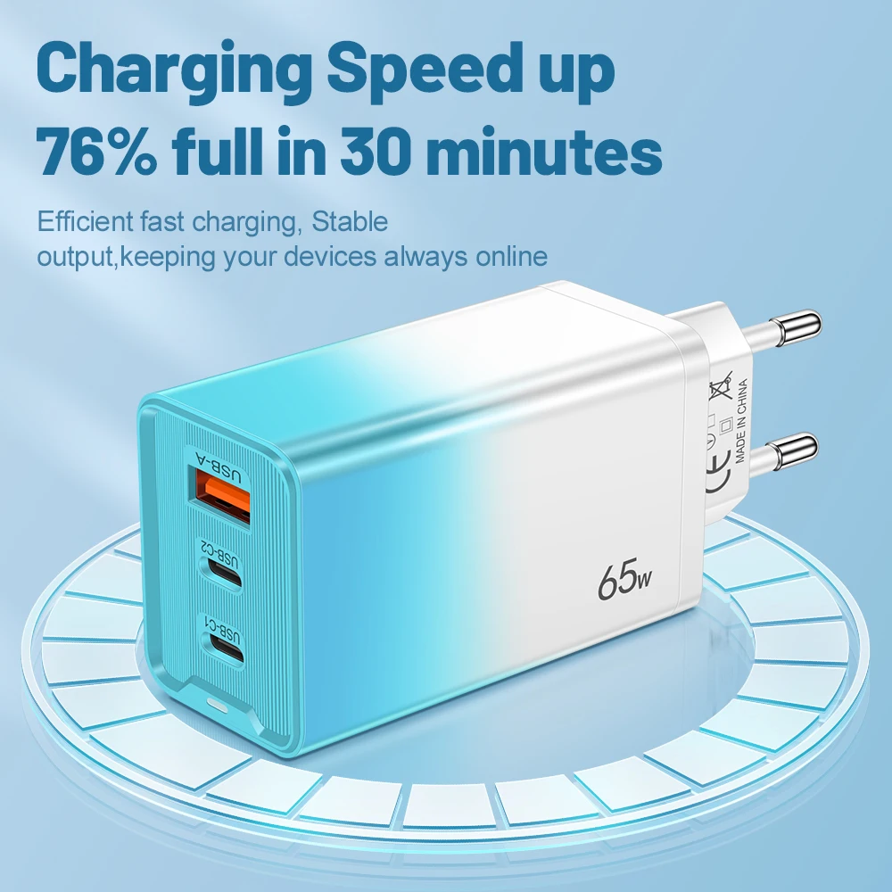 Be the first to review “65W GaN USB C Charger PD QC 3.0 Charging Phone Charger Adapter For iPhone Samsung Xiaomi Type C Quick Charge Wall Charger”