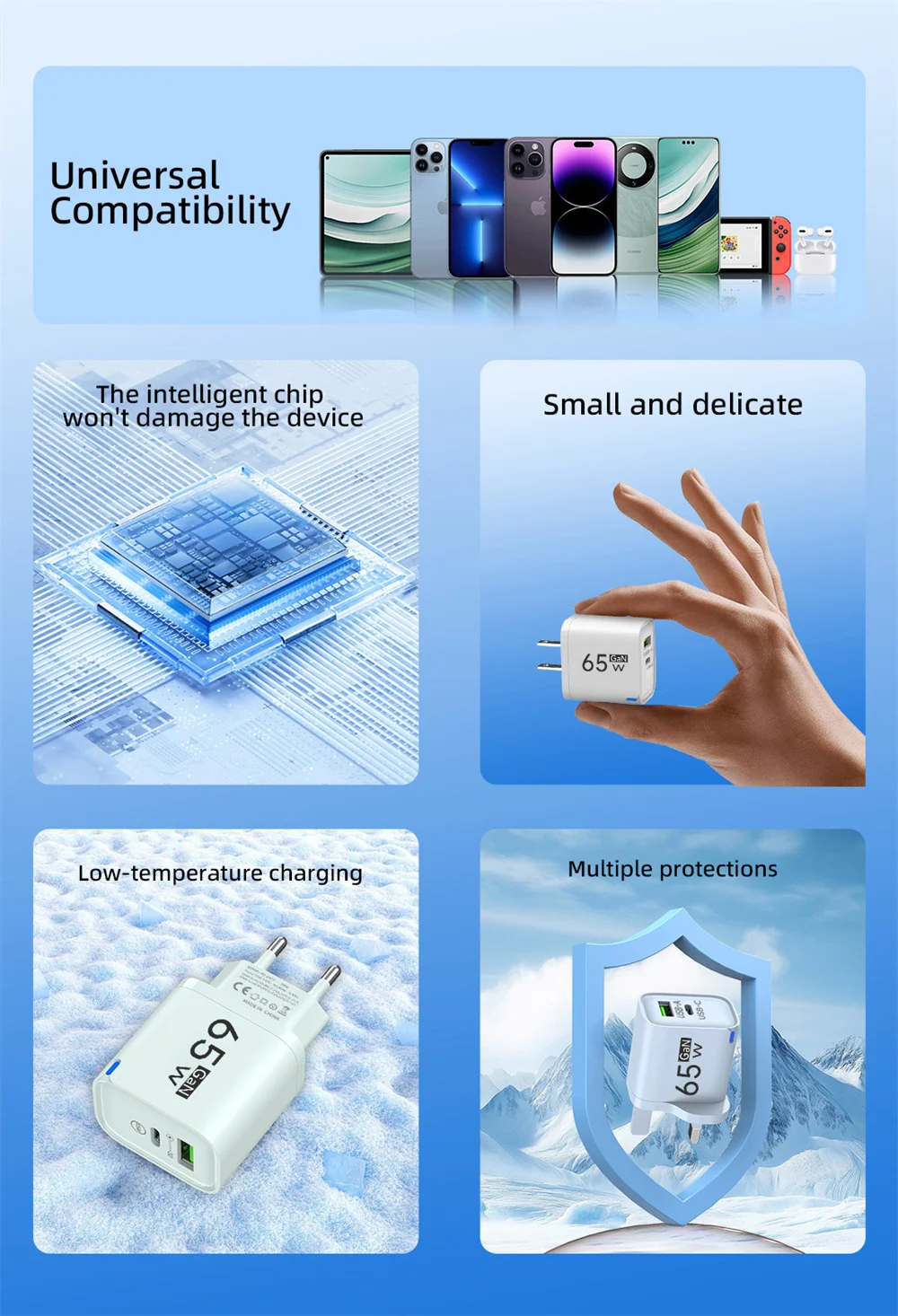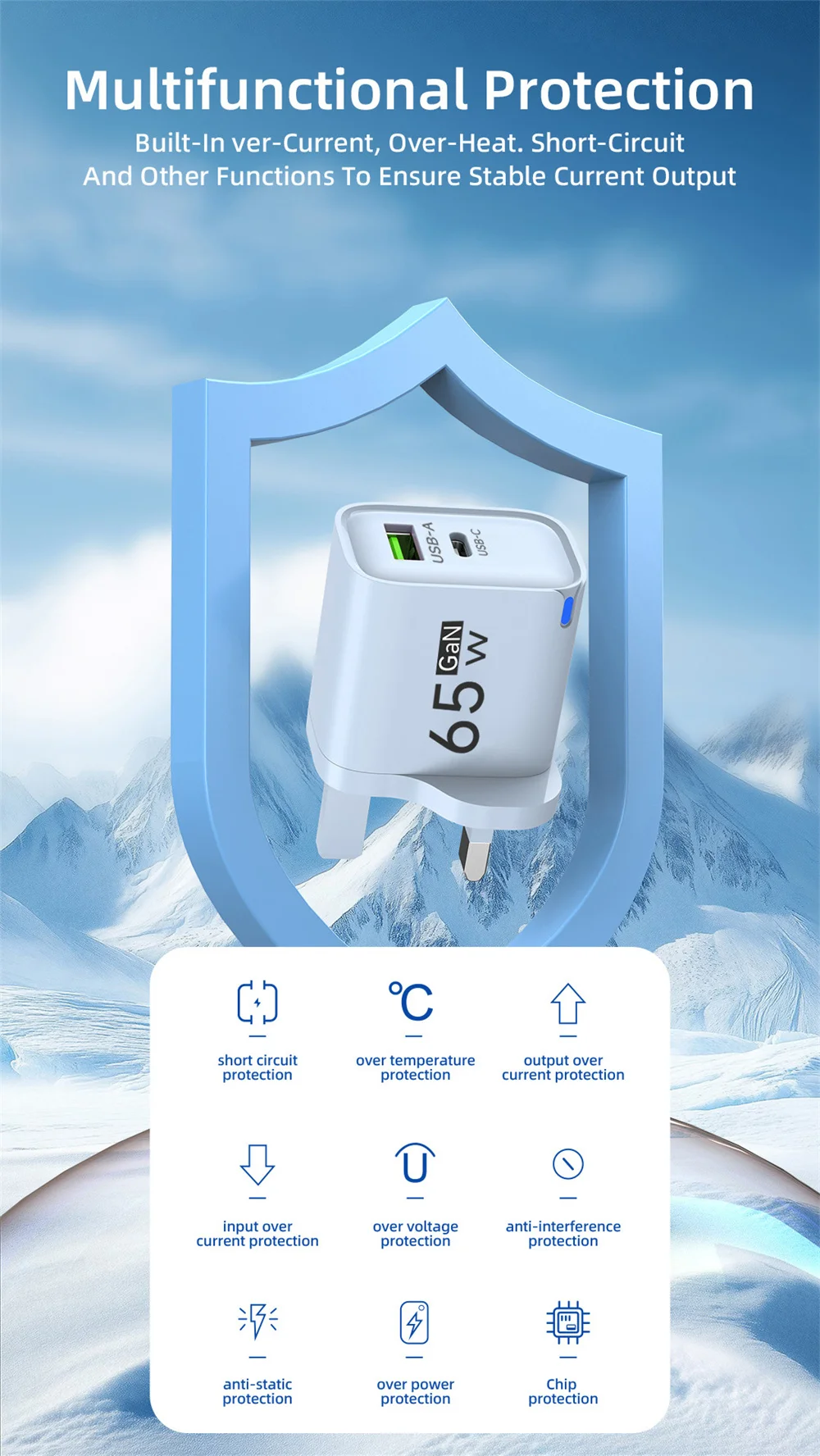 5. Multiple protection mechanisms: quadruple protection againstovercurrent/overvoltage/short circuit/overheating.
