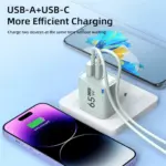 3. Multi interface design: Integrated with 2 output ports (USB-A+Type-C), supporting simultaneous charging of multiple devices such as mobile phones and headphones.
