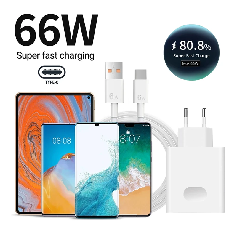 6A 66W Super Fast Charger for Huawei Mate 40 50 60 P50 P60 Nova 9 10 Honor 90 100 Magic 5 Lite 6 Pro Type C Quick Charging Cable