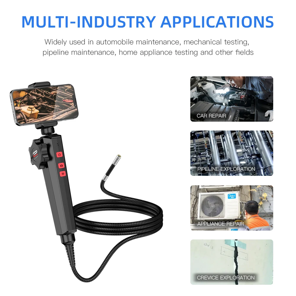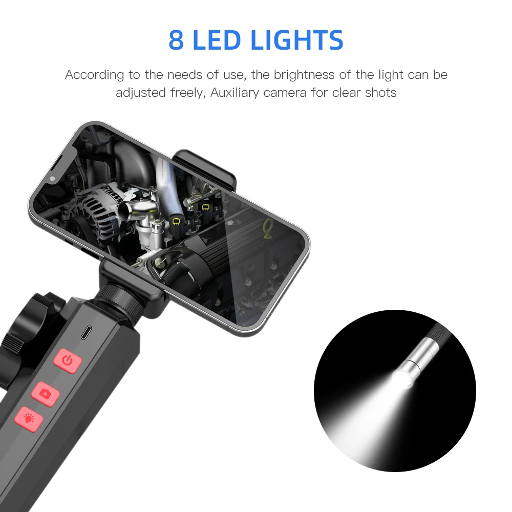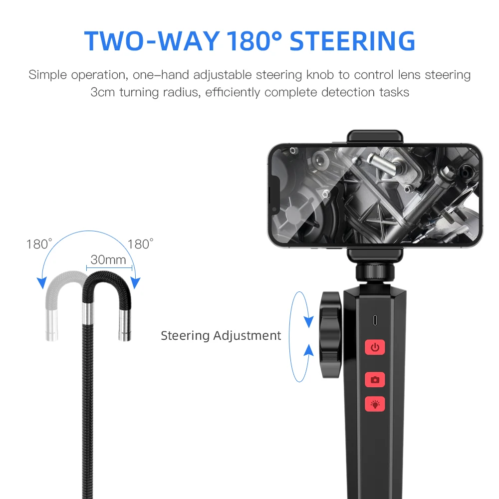 6MM/8MM Newest 180 Degree Steering Industrial Borescope Endoscope Cars Inspection 1080P Camera With 6 LED for iPhone Android PC