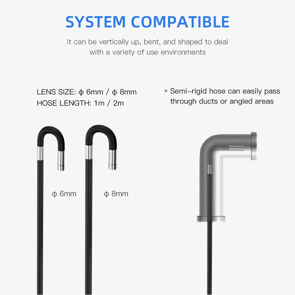 Camera diameter: 6mm/8mm (Can be rotated 180 degrees)