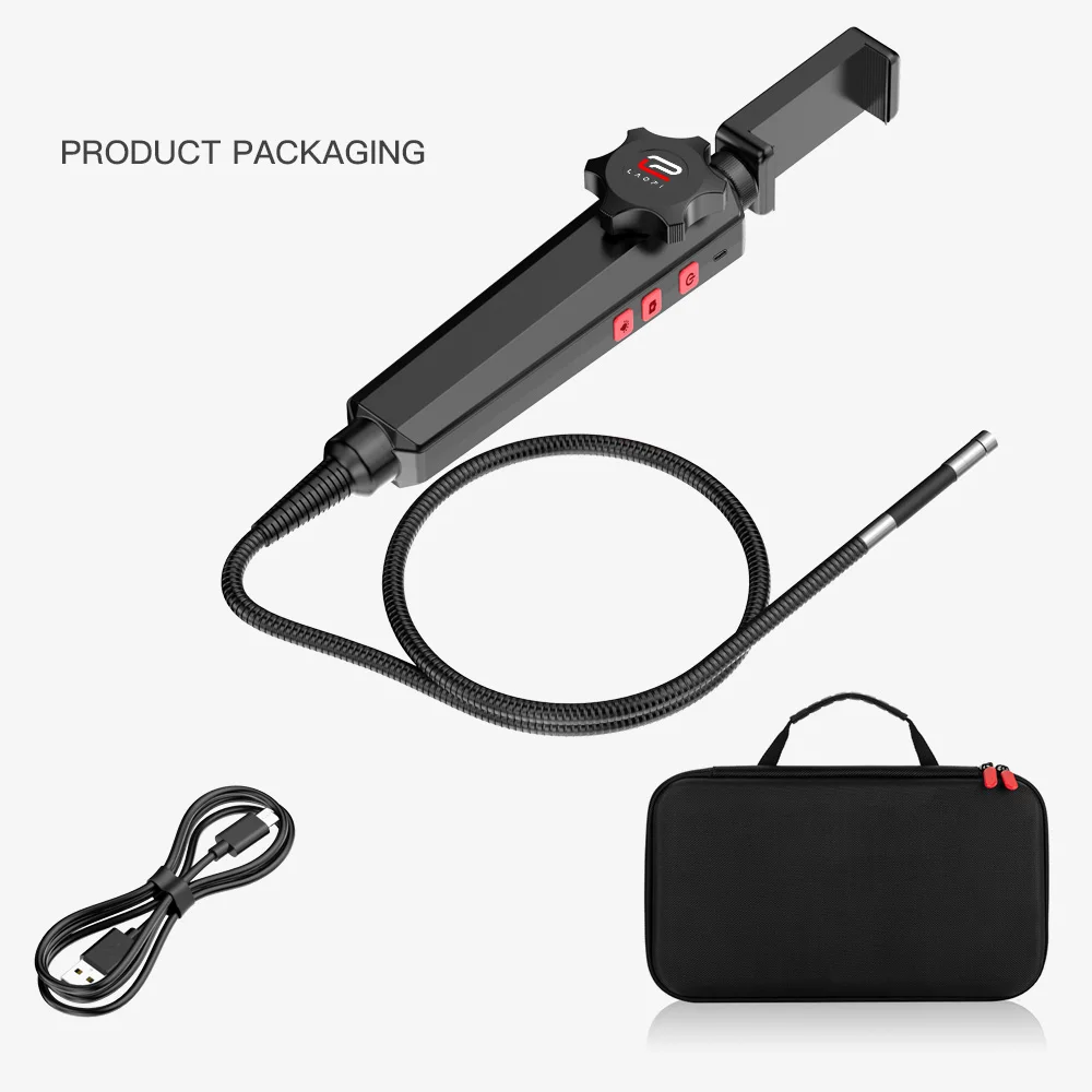 The borescope inspection camera is adopted with a semi-rigid material cable, withstands fluctuations and offers a long service life. The endoscope camera can be folded to different shapes and can be used underwater for pipeline inspections and other inspection situations.Endoscope camera able to work in multiple environments.