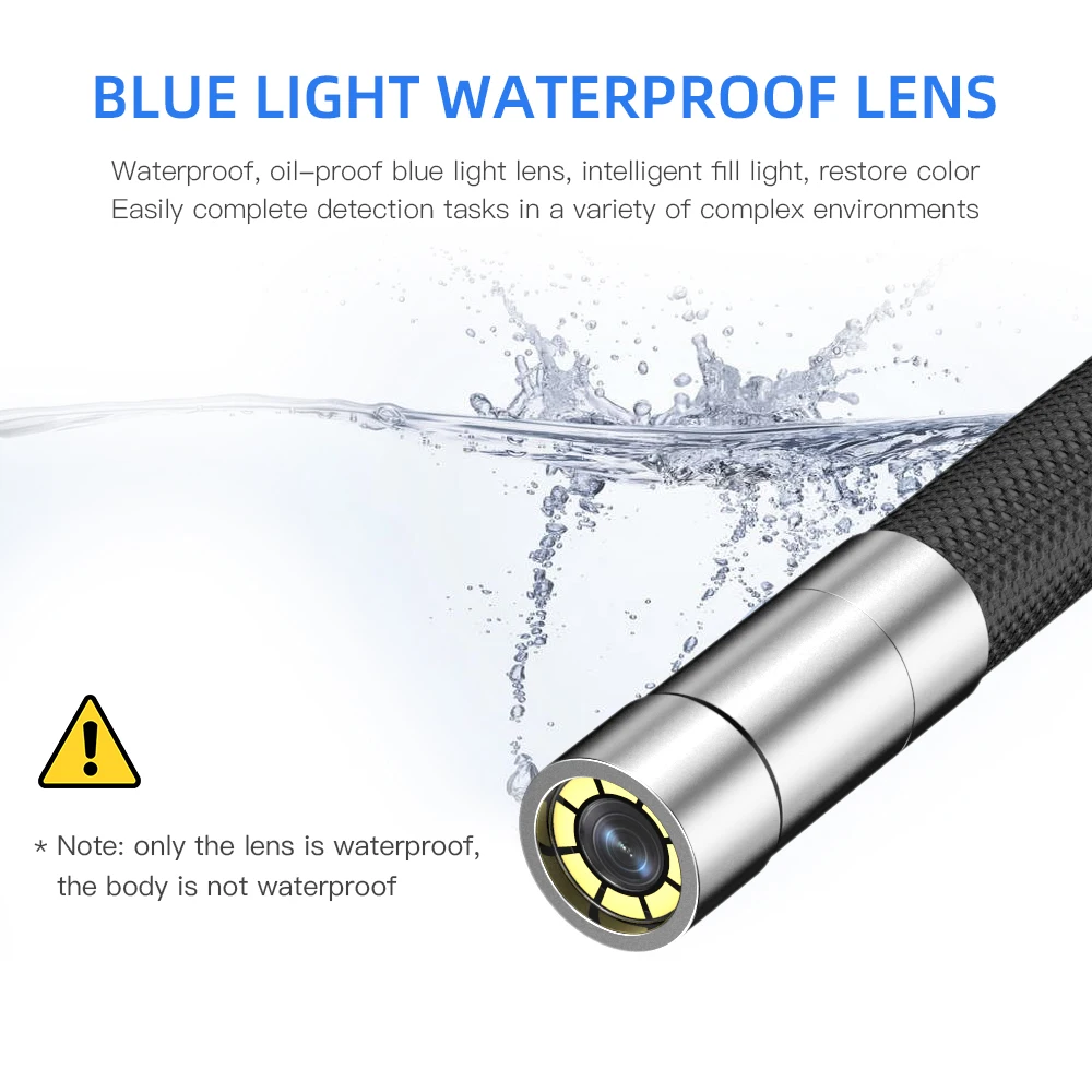 3. Ultra-thin probe with a diameter of 8mm/6mm : IP67 waterproof design allows the camera to operate 3.5 ft (1 meter) underwater.Can be rotated 180 degrees for non-destructive inspection of hard-to-reach places, such as drains, sewers, exhaust vents, ducts, stoves, motors.