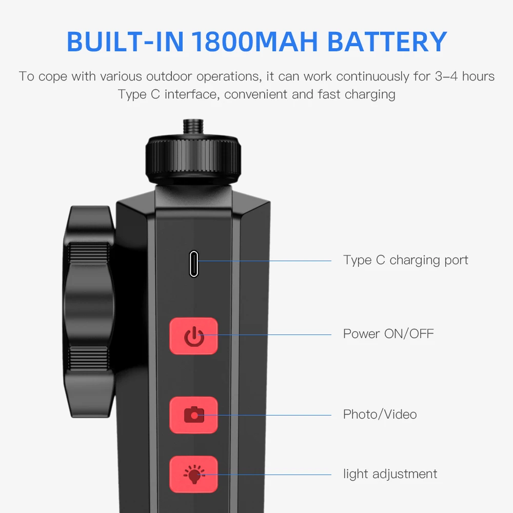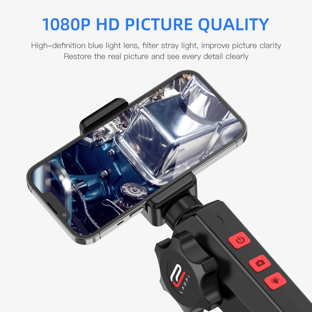 4.Built-in 8 adjustable LED lights :The lens is equipped with 2 million high-definition pixels,The close-up macro lens displays real-time high-resolution images, plus 8 adjustable LED lights, which can adapt to various operating environments,to see in the darkest spaces.