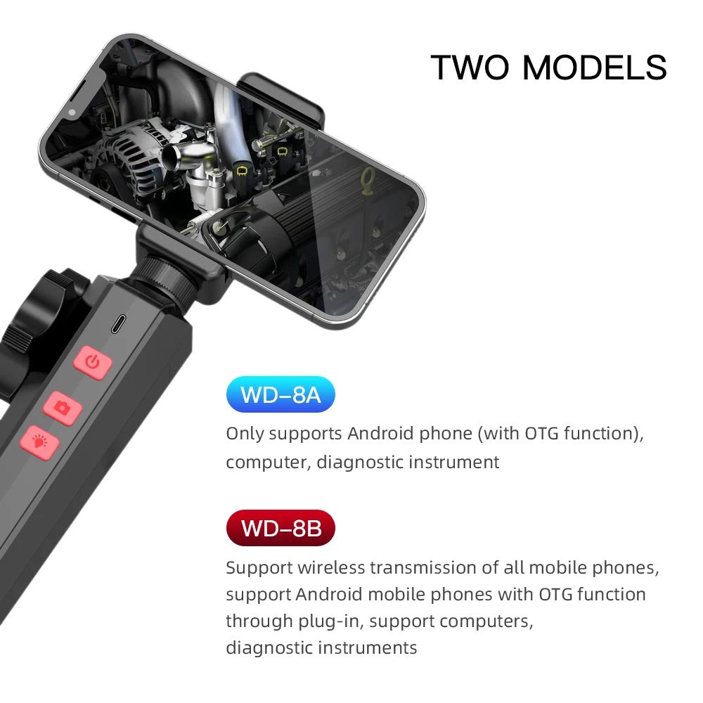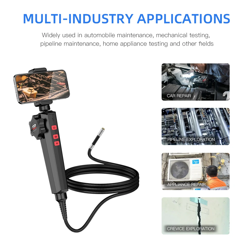 6MM/8MM Newest 180 Degree Steering Industrial Borescope Endoscope Cars Inspection 1080P Camera With 6 LED for iPhone Android PC