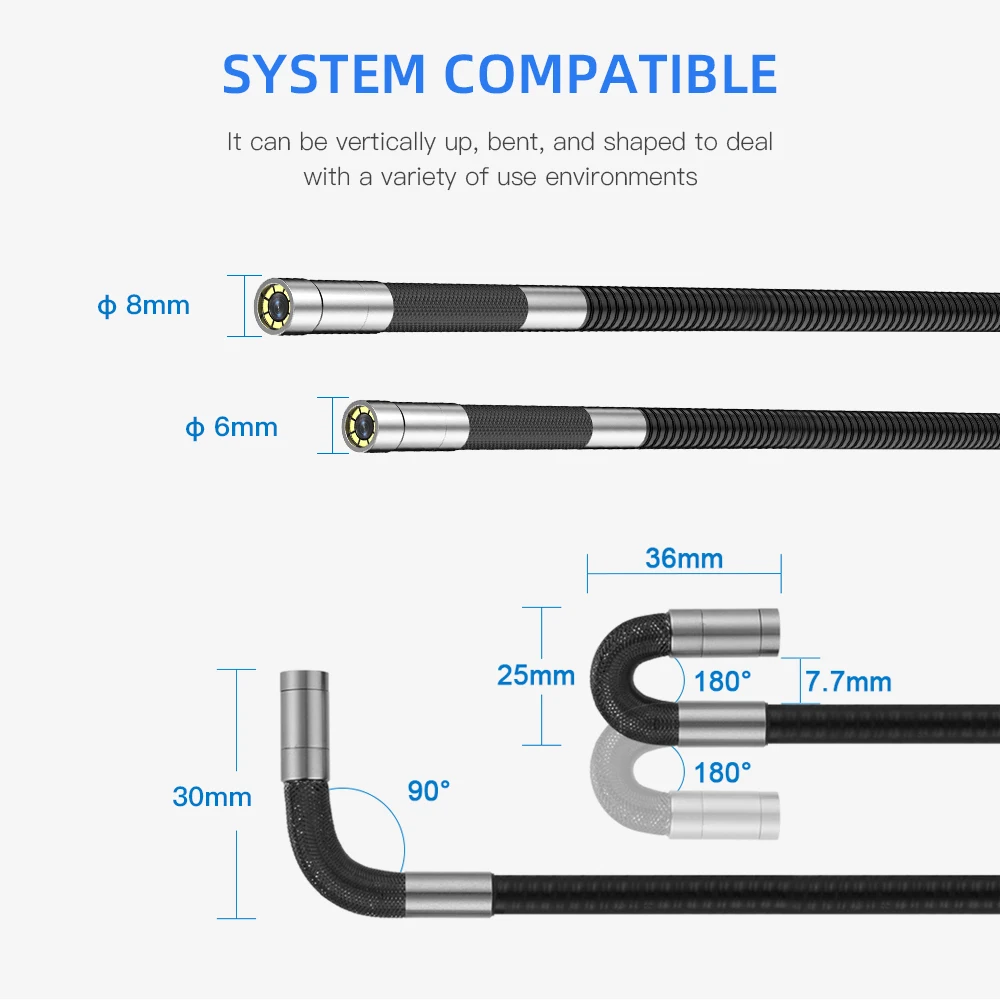 Camera diameter: 6mm/8mm (Can be rotated 180 degrees)