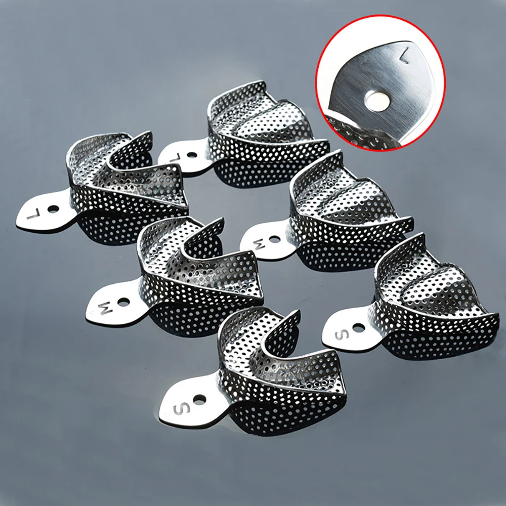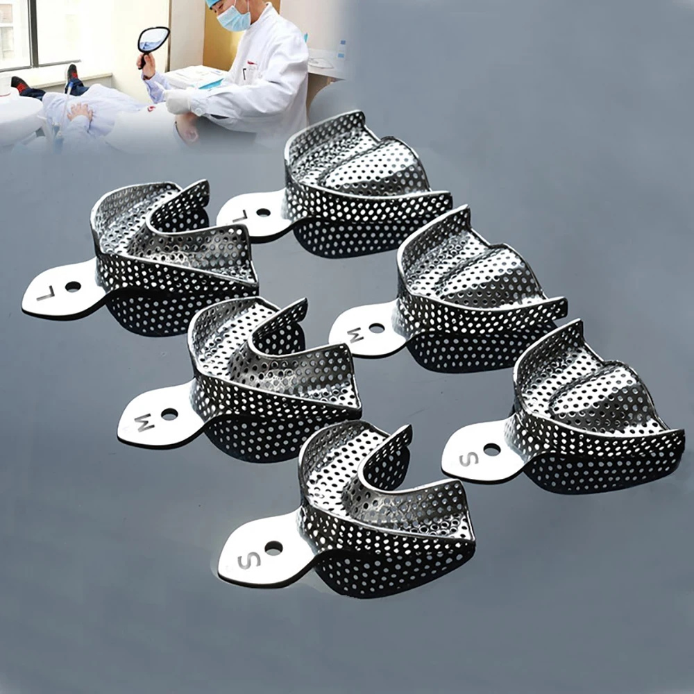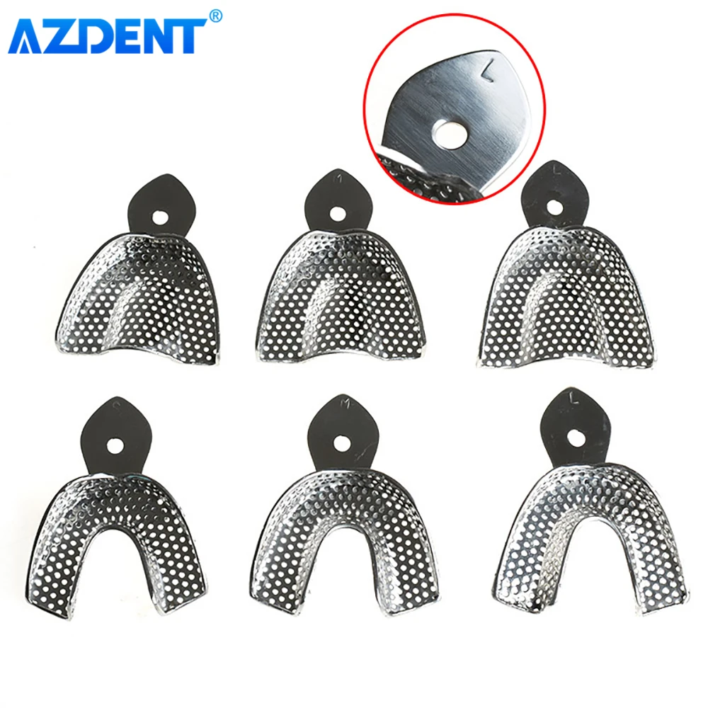 6pcs AZDENT Dental Impression Tray Stainless Steel Teeth Trays Autoclavable Instrument Dentist Tools Lab Large Small Middle Size