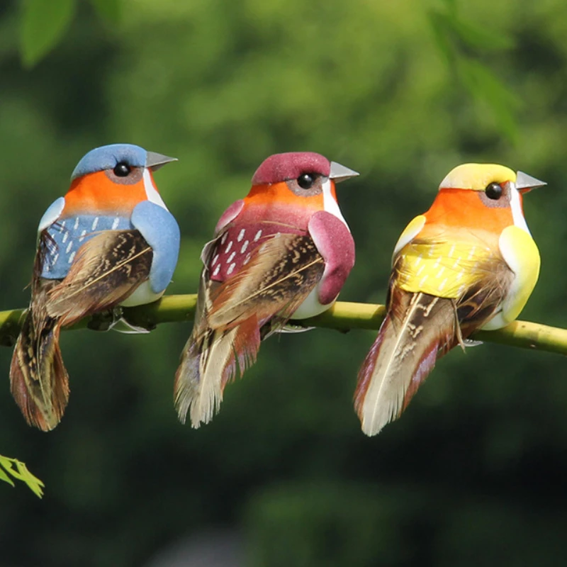 6pcs Cute Artificial Birds Fake Foam Animal Simulation Feather Birds Models Tit DIY Craft Home Garden Ornament Decoration