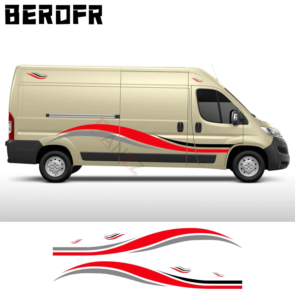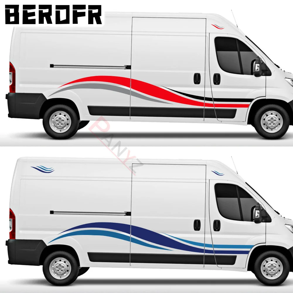 6Pcs/Lot Car Stickers Graphics Boxer Camper Van Decals For Peugeot Boxer Citroen Jumper Fiat Ducato Motorhome Stripe Accessories