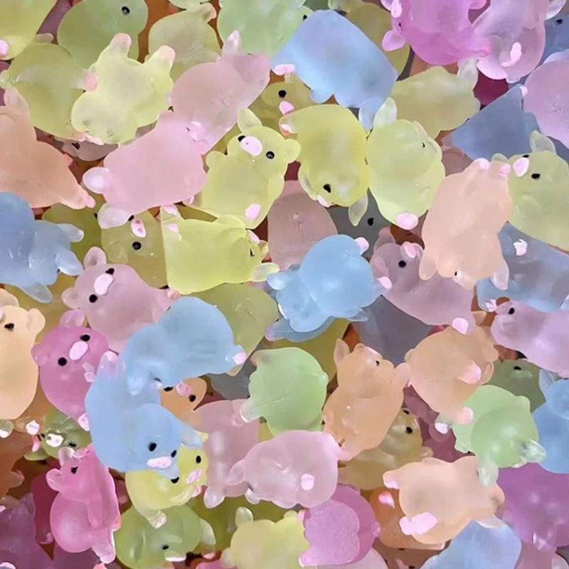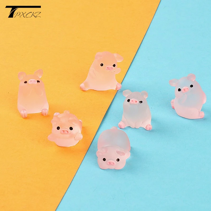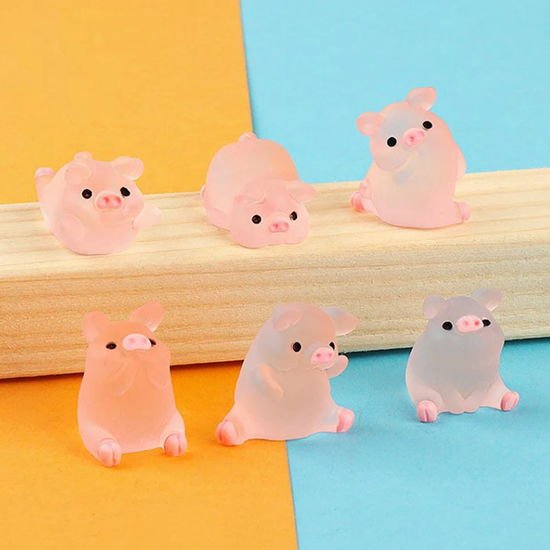 6pcs Luminous Mini Resin Pig Car Dashboard Toys Dolls Figures Home Garden Decoration Cartoon Colorful Cute Car Ornaments Gifts