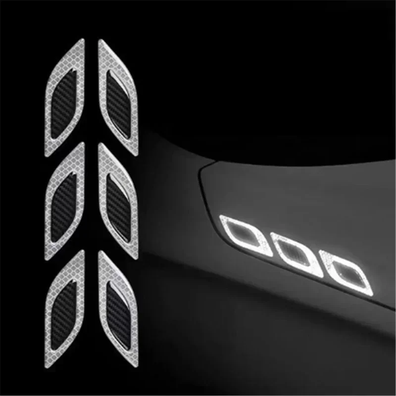 6PCS/Set Car Reflective Carbon Fiber Sticker 3D Car Styling Reflective Strips Night Safety Warning Reflector Tape Stickers Decal