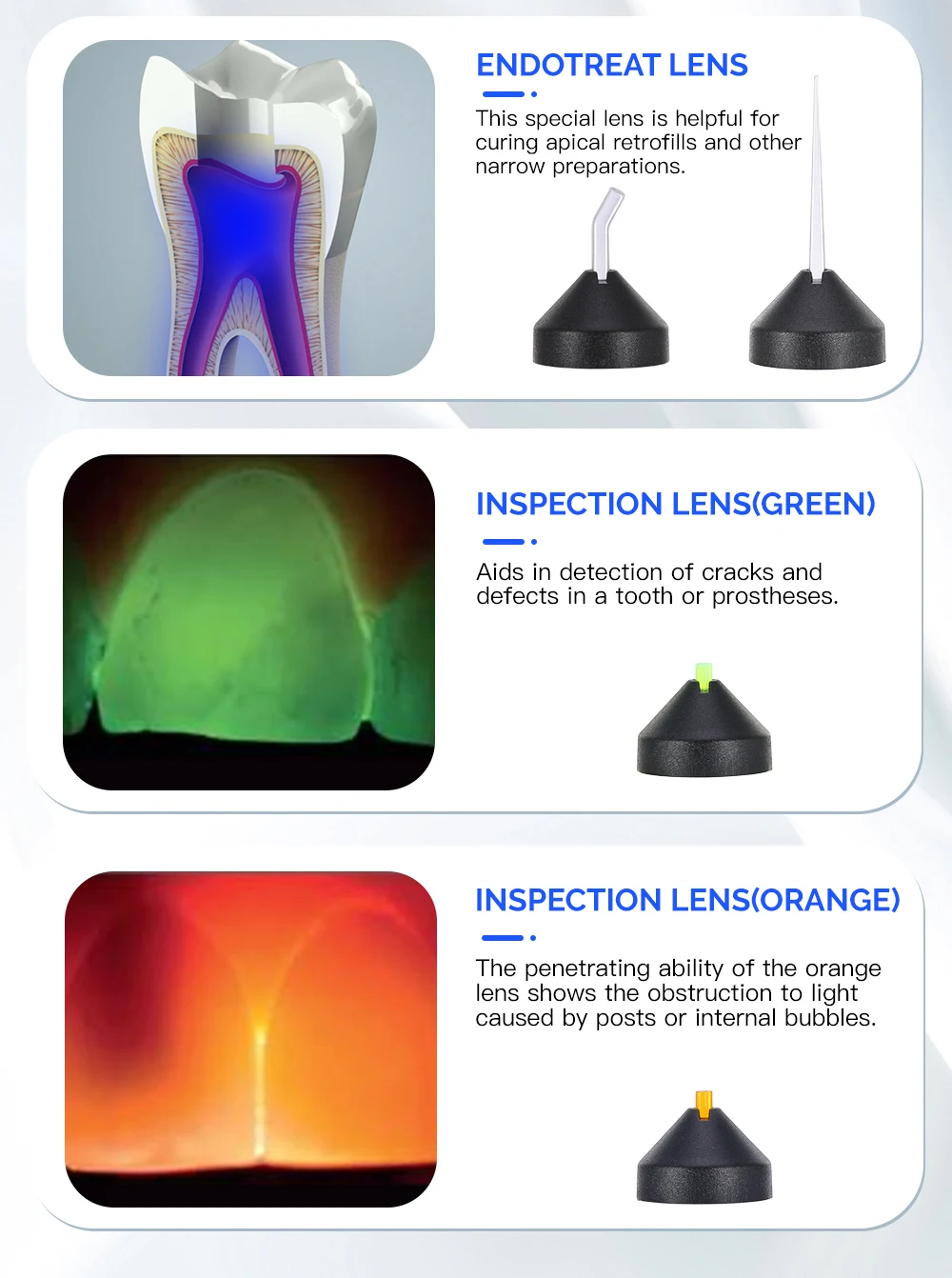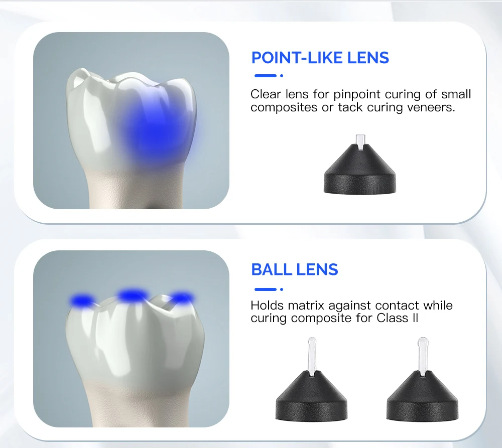 This special lens is helpful for curing apical retrofills and other narrow preparations.