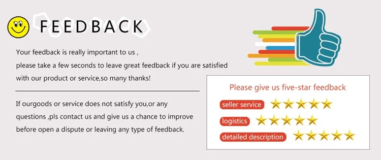 (1) Welcome to shopping in our store, we will appreciate if you can give us 5 stars and good review when you receive the package and you are satisfied.