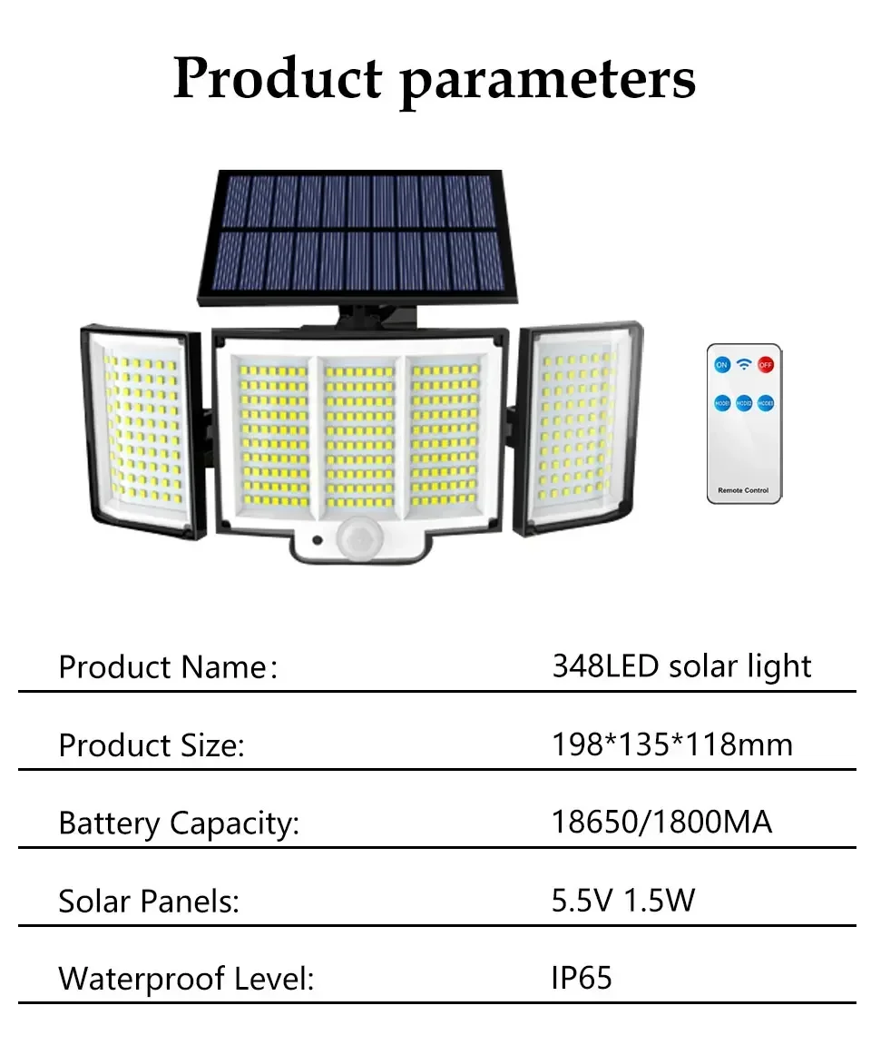 77/158/348LEDs Solar Light Outdoor with Remote Motion Sensor Street Light IP65 Waterproof 3 Modes Wall Lamp Garage Garden Decor