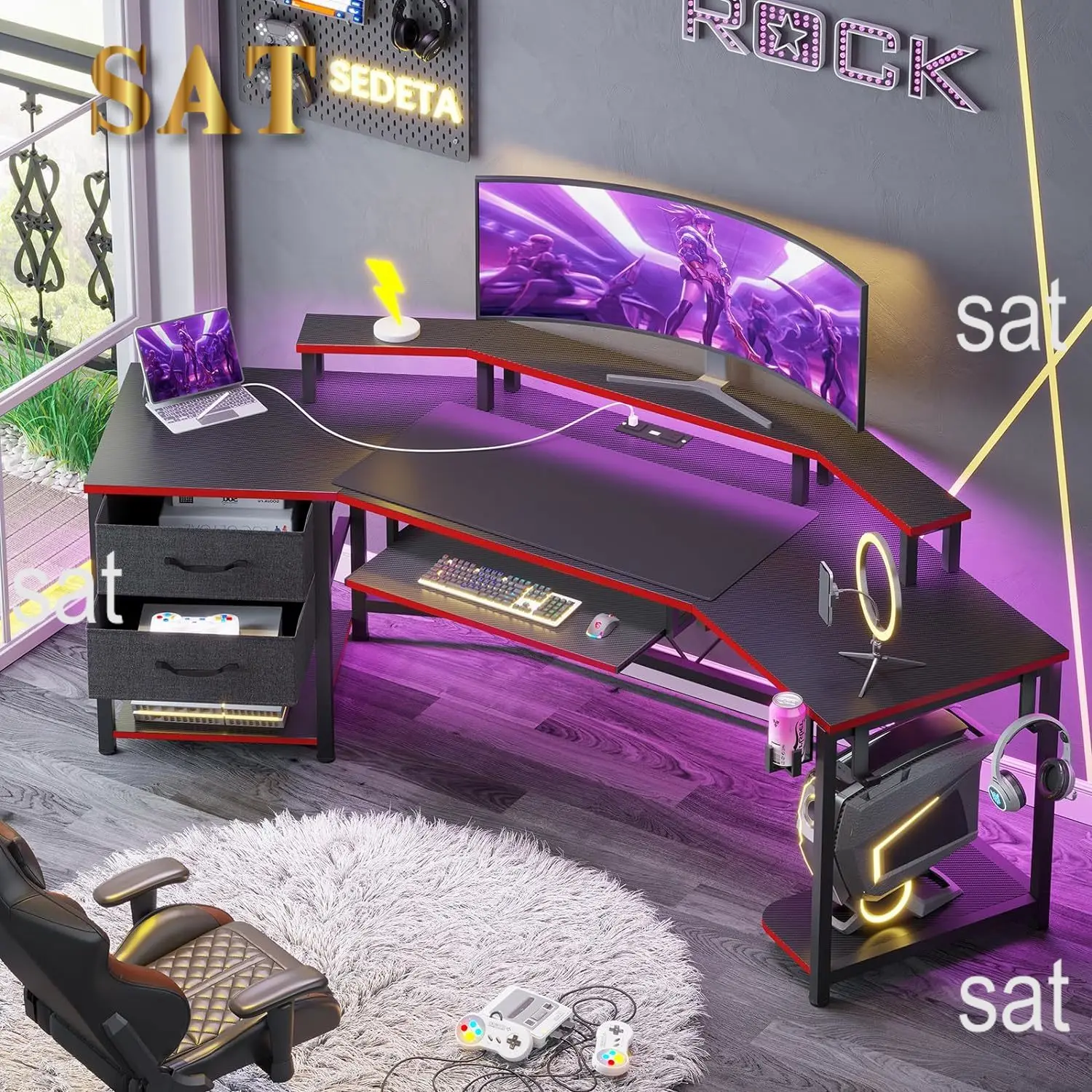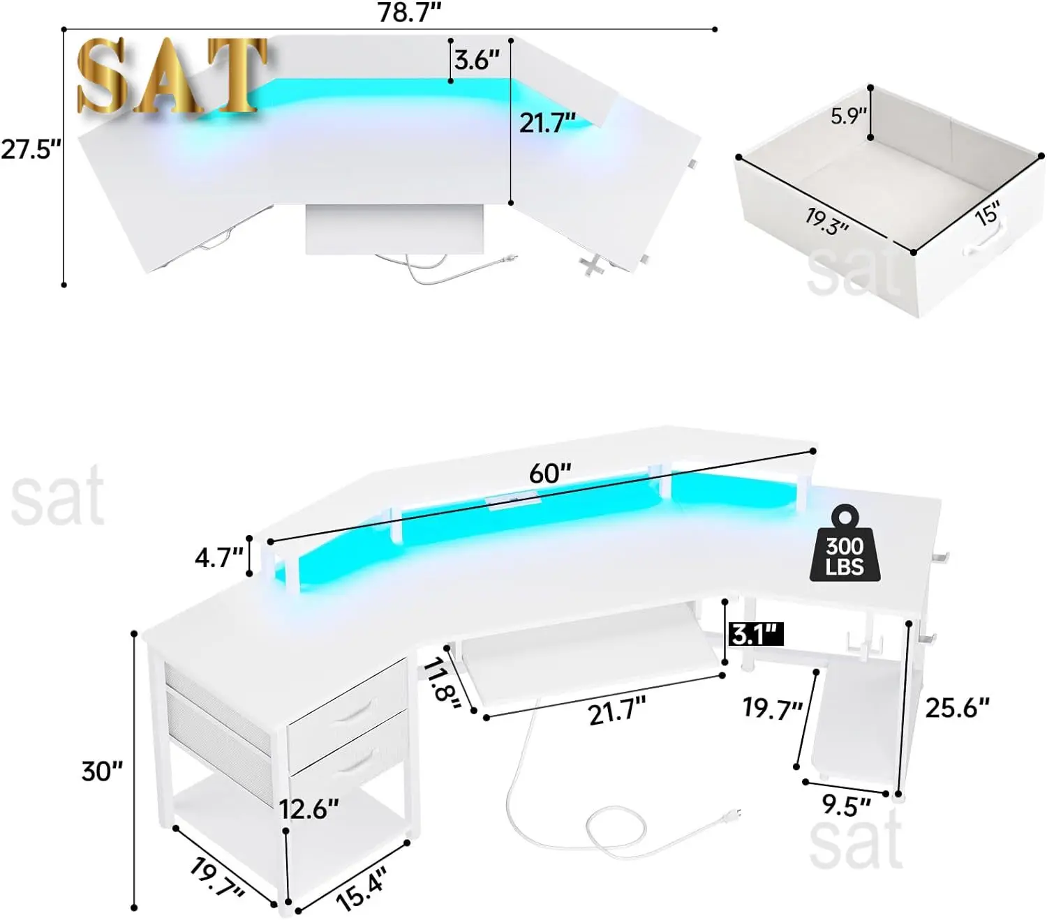 79″ Gaming Desk,Computer Desk with 2 Fabric Drawers & LED Light,Small Desk with Storage for Home Office