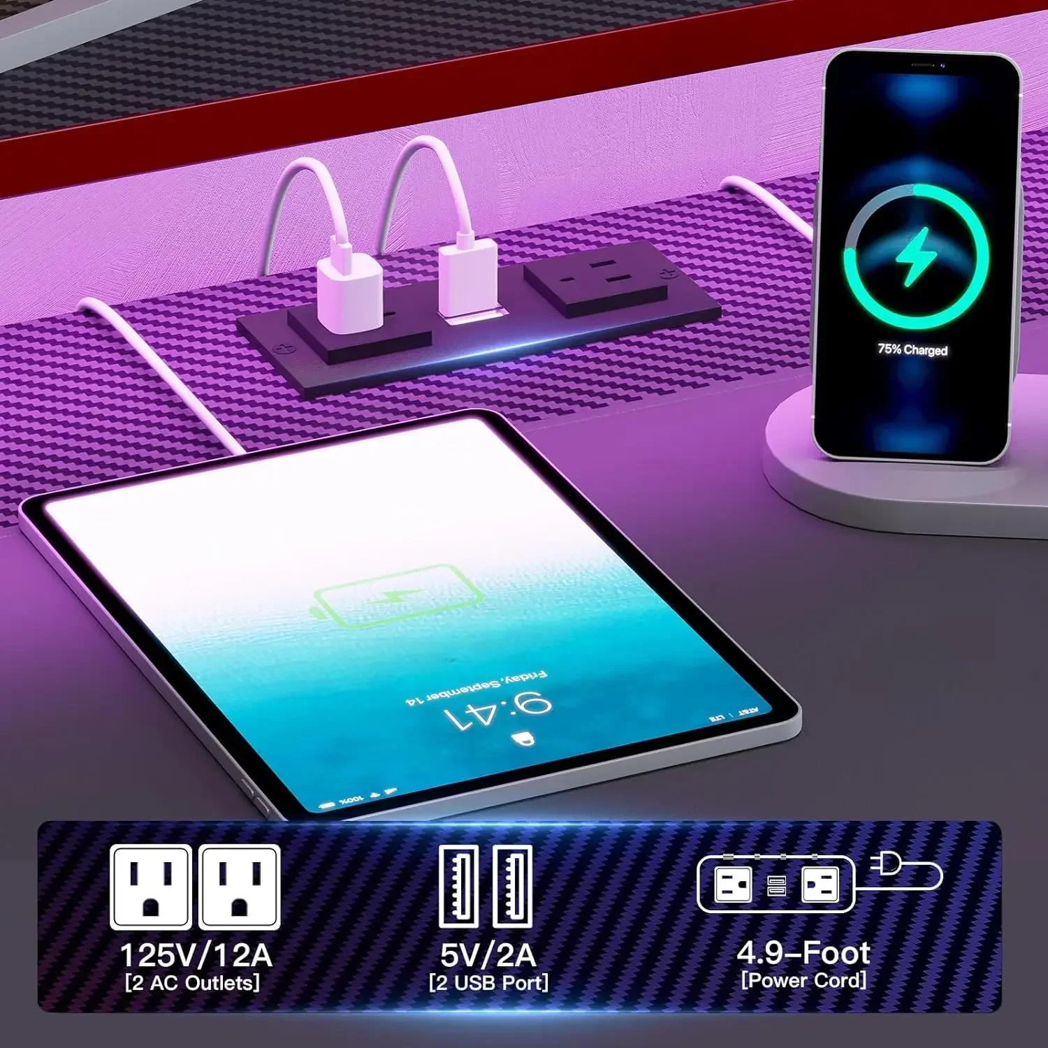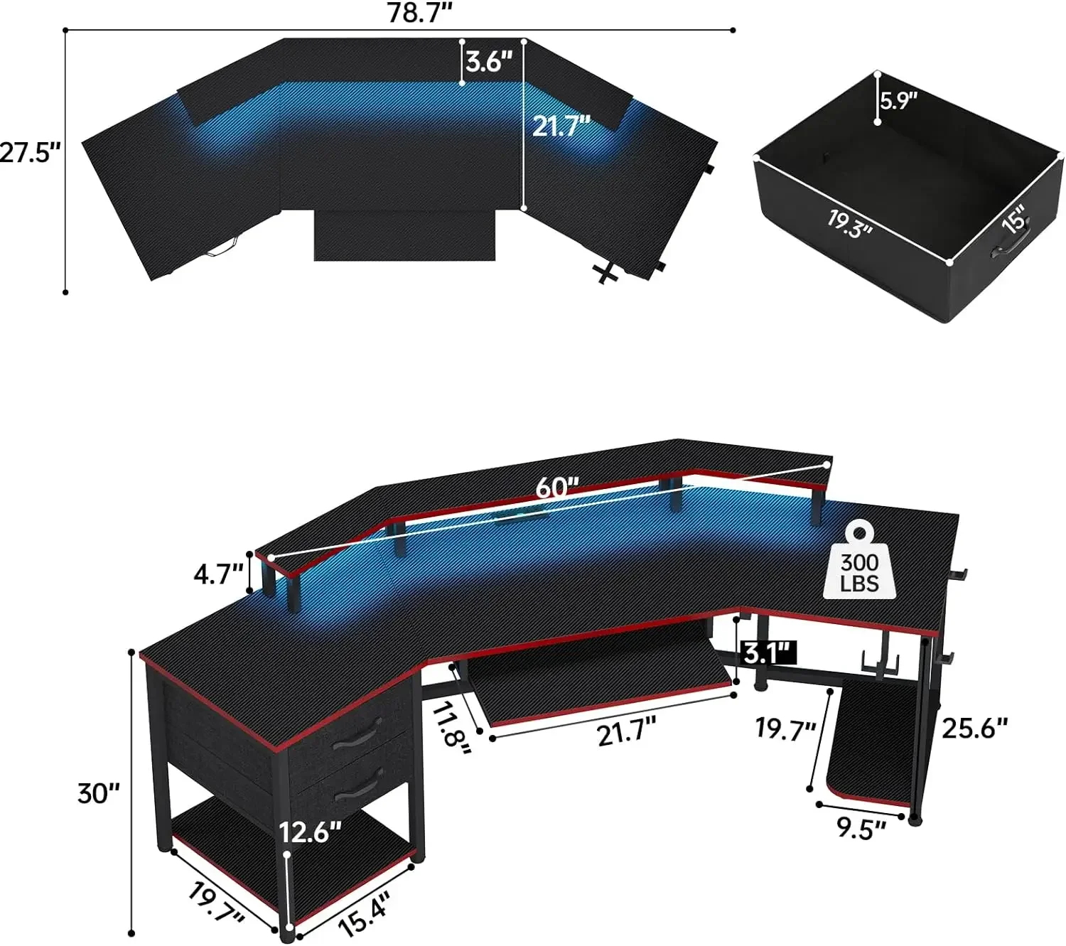 79″ Gaming Desk,Computer Desk with 2 Fabric Drawers & LED Light,Small Desk with Storage for Home Office