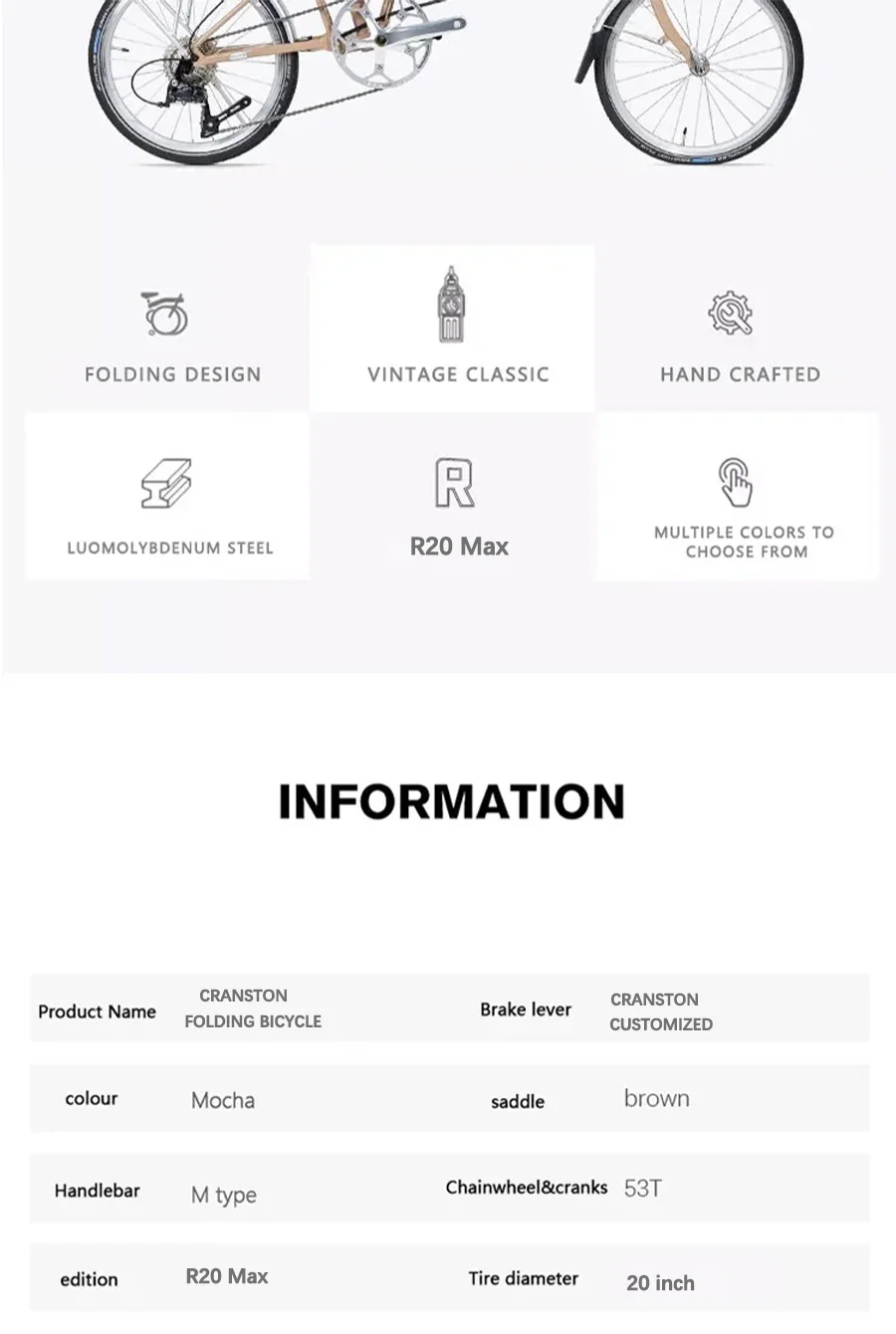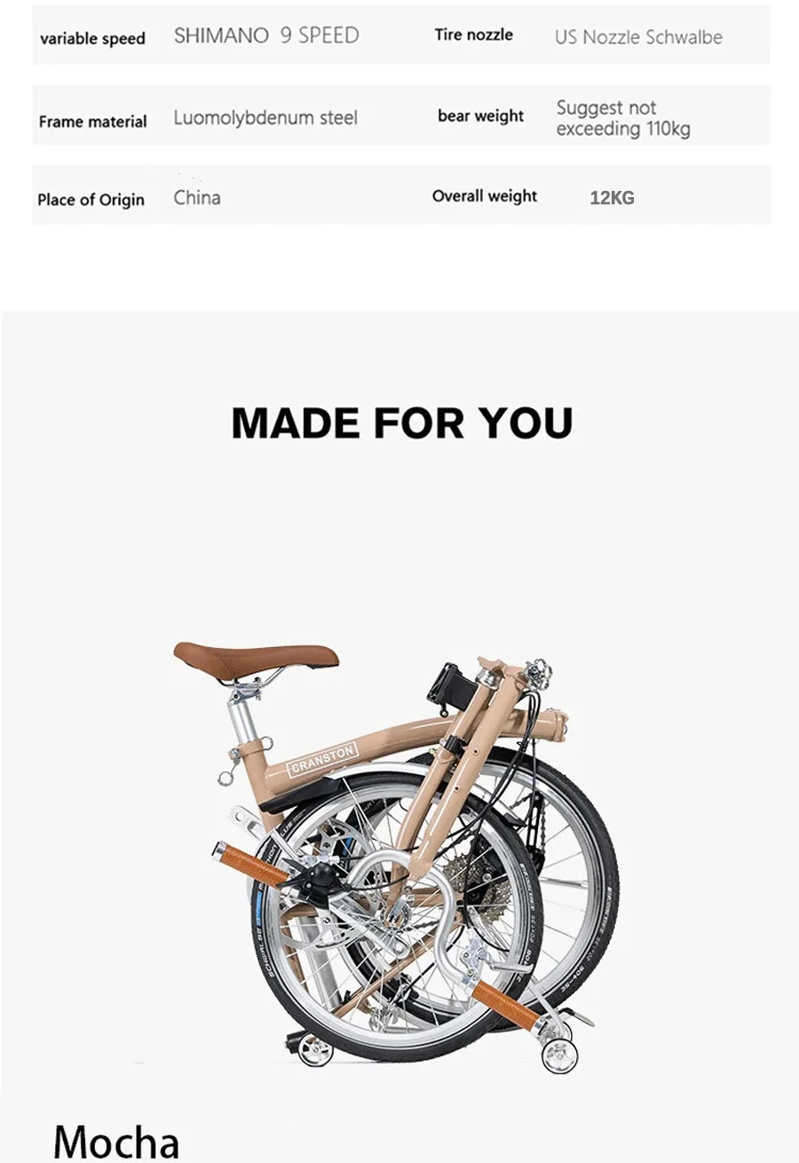 20inch Luomolybdenum steel folding frame,Head tube+Front Fork width 74mm +rear Fork width 130mm |